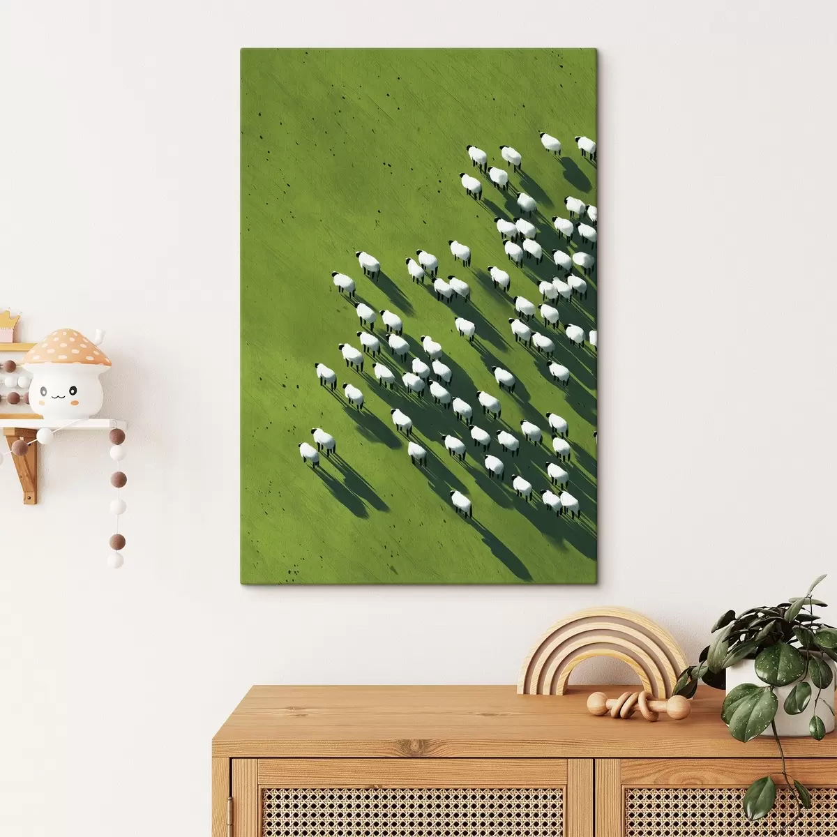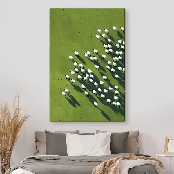 Peintures Champ vert avec un troupeau de moutons, abstraction, vue aérienne s44793