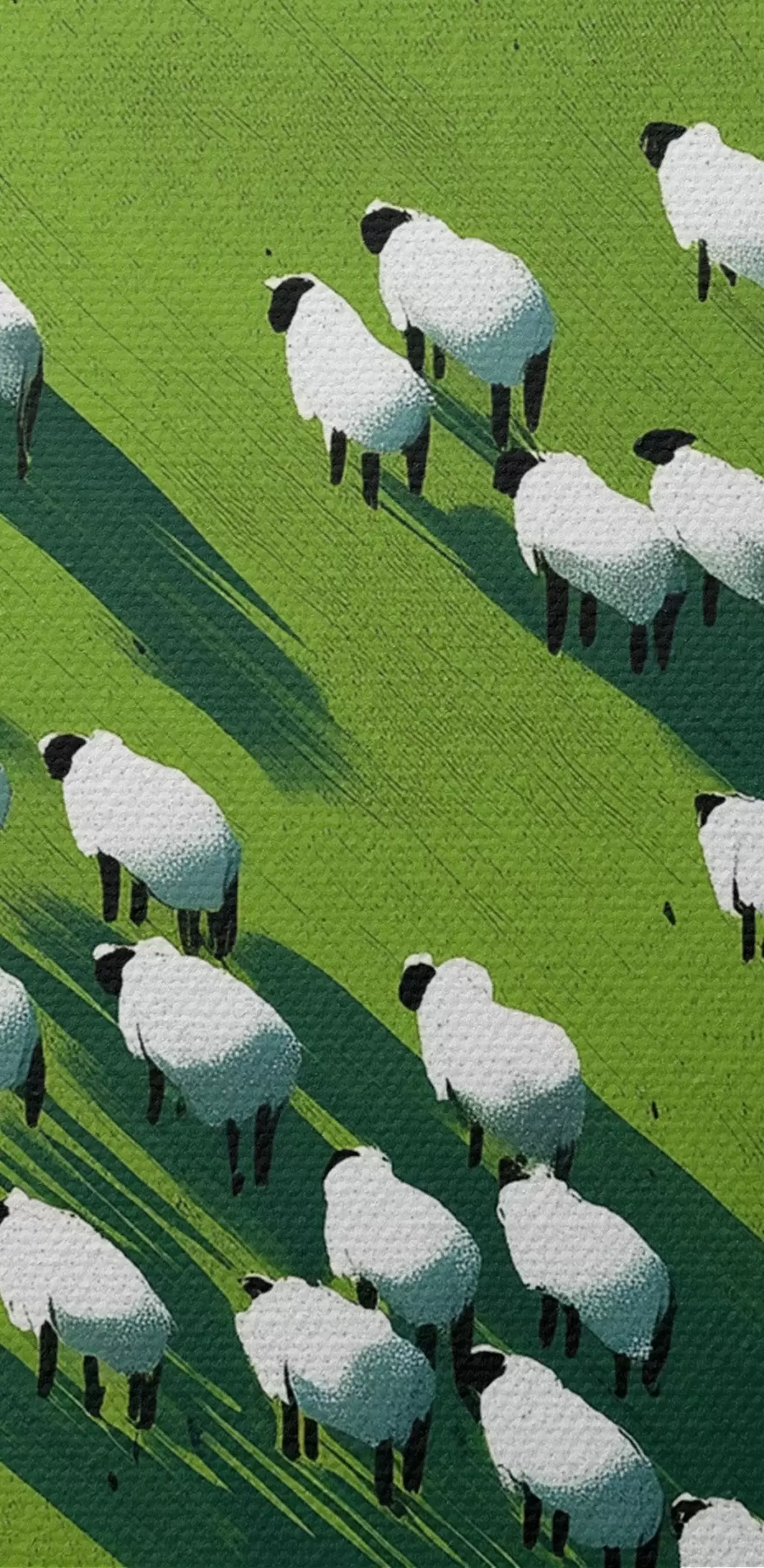 Peinture Champ vert avec un troupeau de moutons, abstraction, vue aérienne Art. s44793
