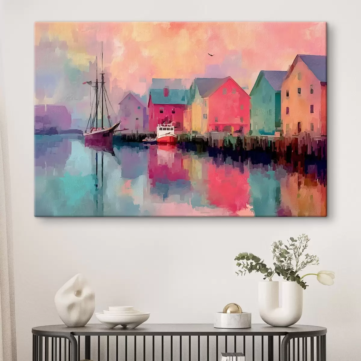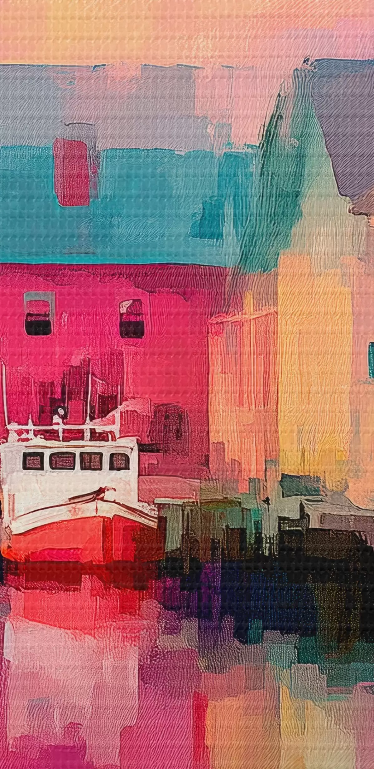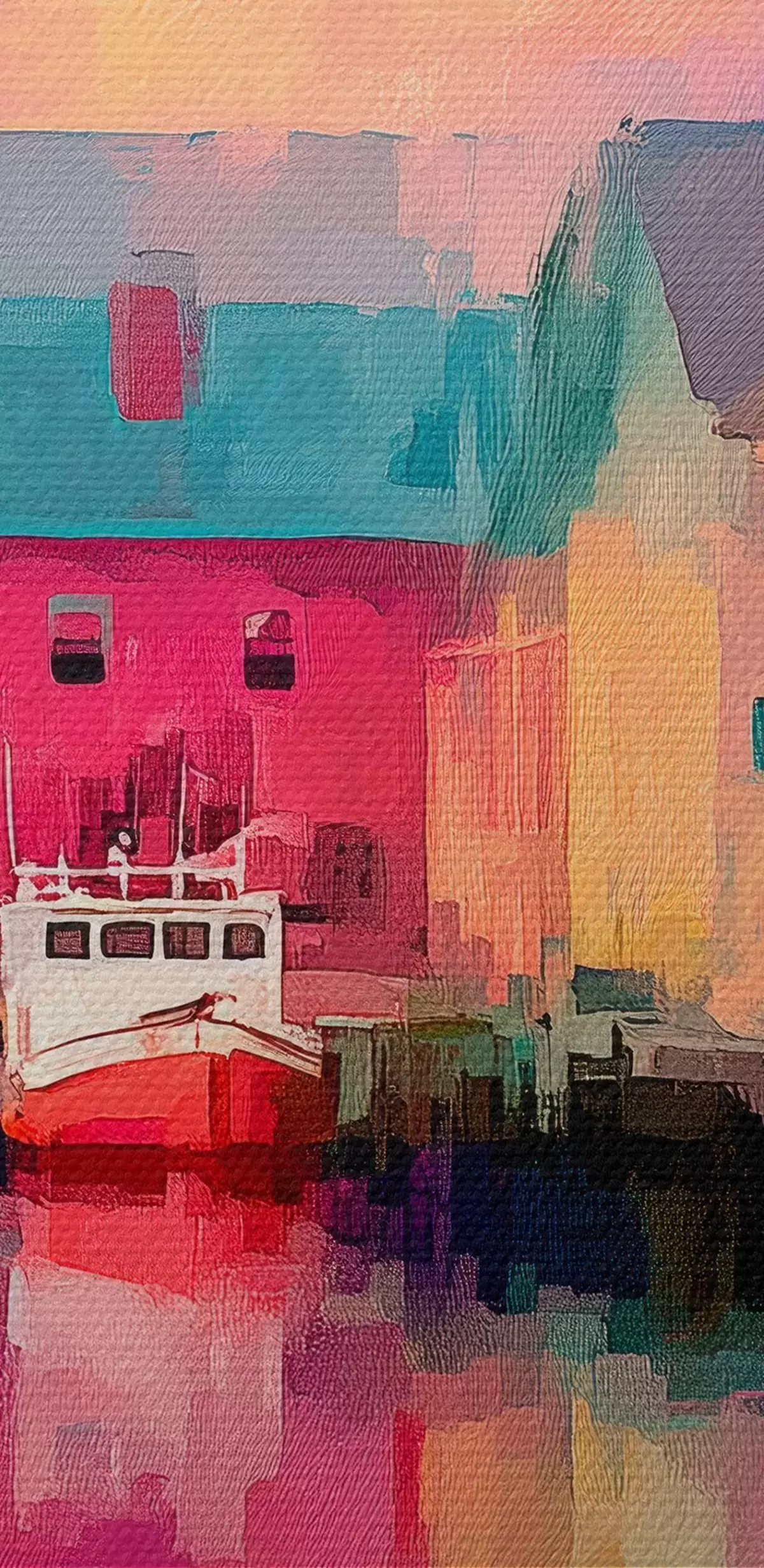 Peinture Maisons colorées au bord de l'eau en style coup de pinceau Art. s44837