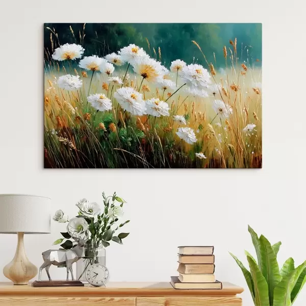 Peinture Fleurs blanches dans un pré à l'huile Art. s44842