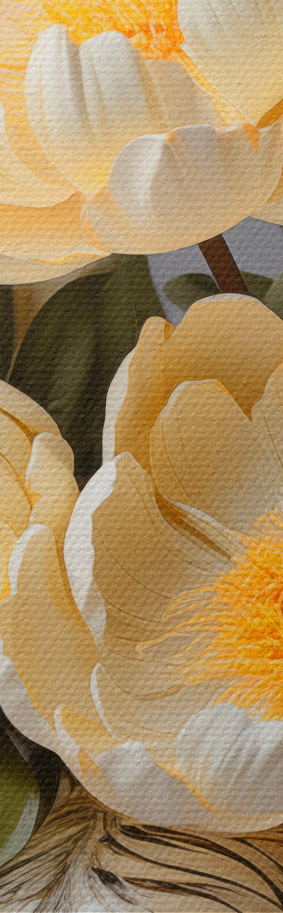 Trois types de matériaux peuvent être commandés : Economic Canvas - matériau dense et durable pour l'impression numérique, identique à la toile de peintre, surface imperméable, reproduction réaliste des détails, matériau à grain moyen. Premium Canvas - la texture ressemble à celle d'une toile de peintre (petits fils entrelacés). Reproduction douce et détaillée de l'image sur une surface mate. Eco-Premium - tissu 100 % coton de haute qualité. Grâce aux fibres naturelles de coton, le matériau est durable et résistant à l'usure. Excellente reproduction des couleurs et des détails.