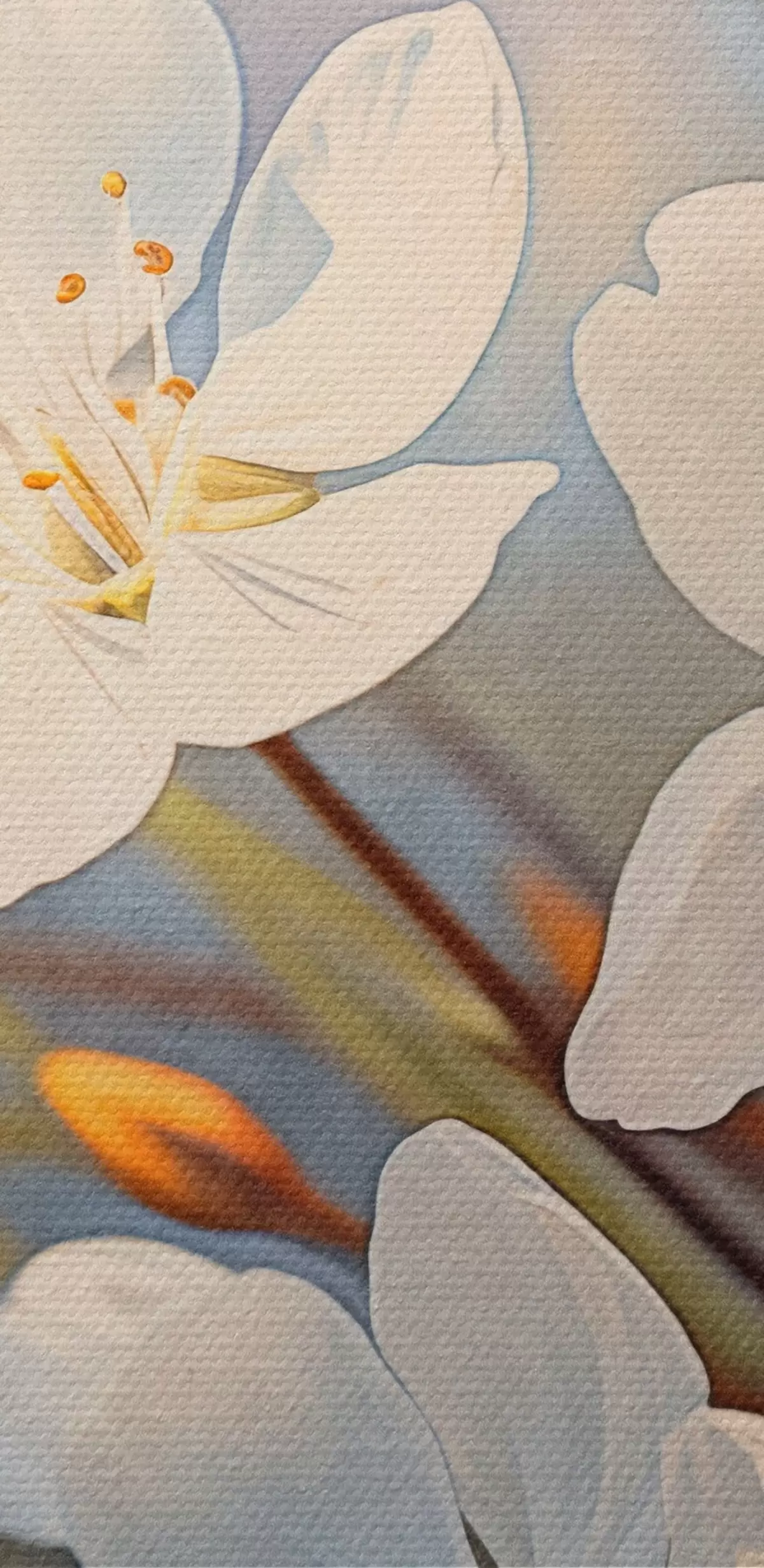 Peinture Fleurs de cerisier blanches texturées dans un style aquarelle, pétales délicats, saison printanière Art. s44859