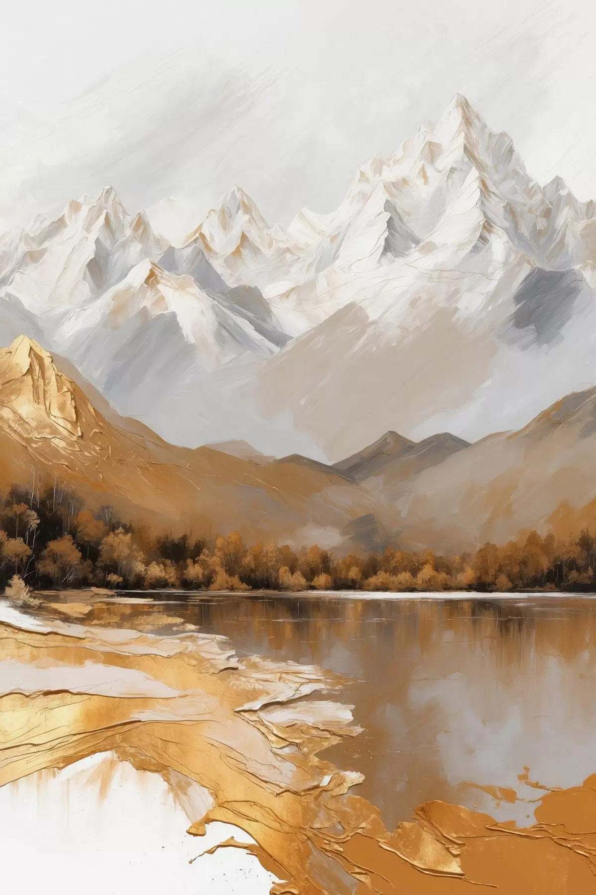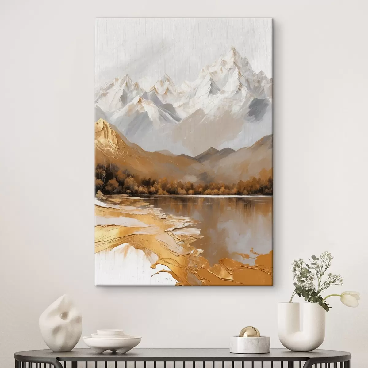 Peinture Paysage de montagne avec un lac dans des couleurs chaudes Art. s44877