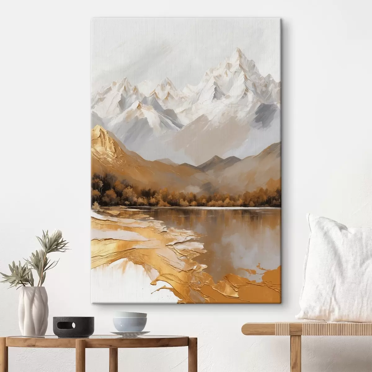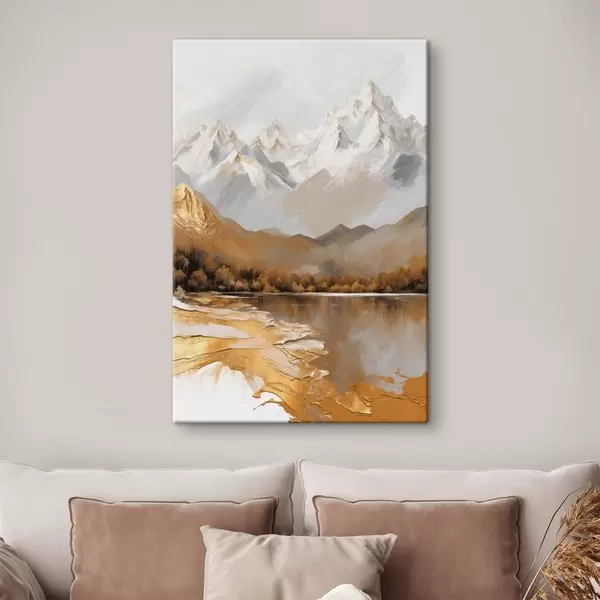 Peintures Paysage de montagne avec un lac dans des couleurs chaudes s44877