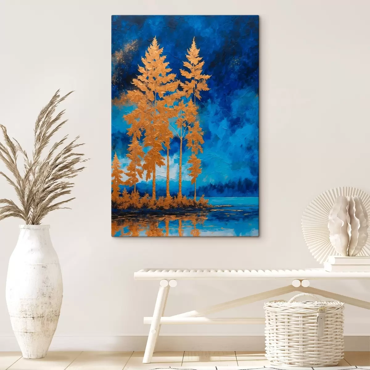 Peinture Arbres sur fond de ciel nocturne dans les tons bleus Art. s44888
