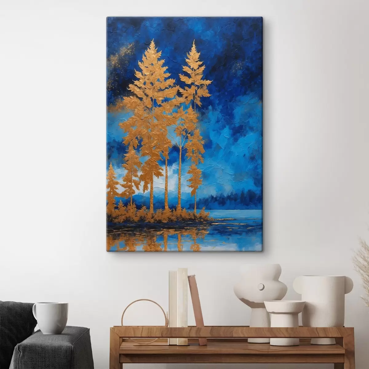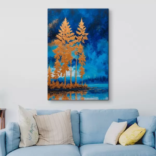 Peinture Arbres sur fond de ciel nocturne dans les tons bleus Art. s44888