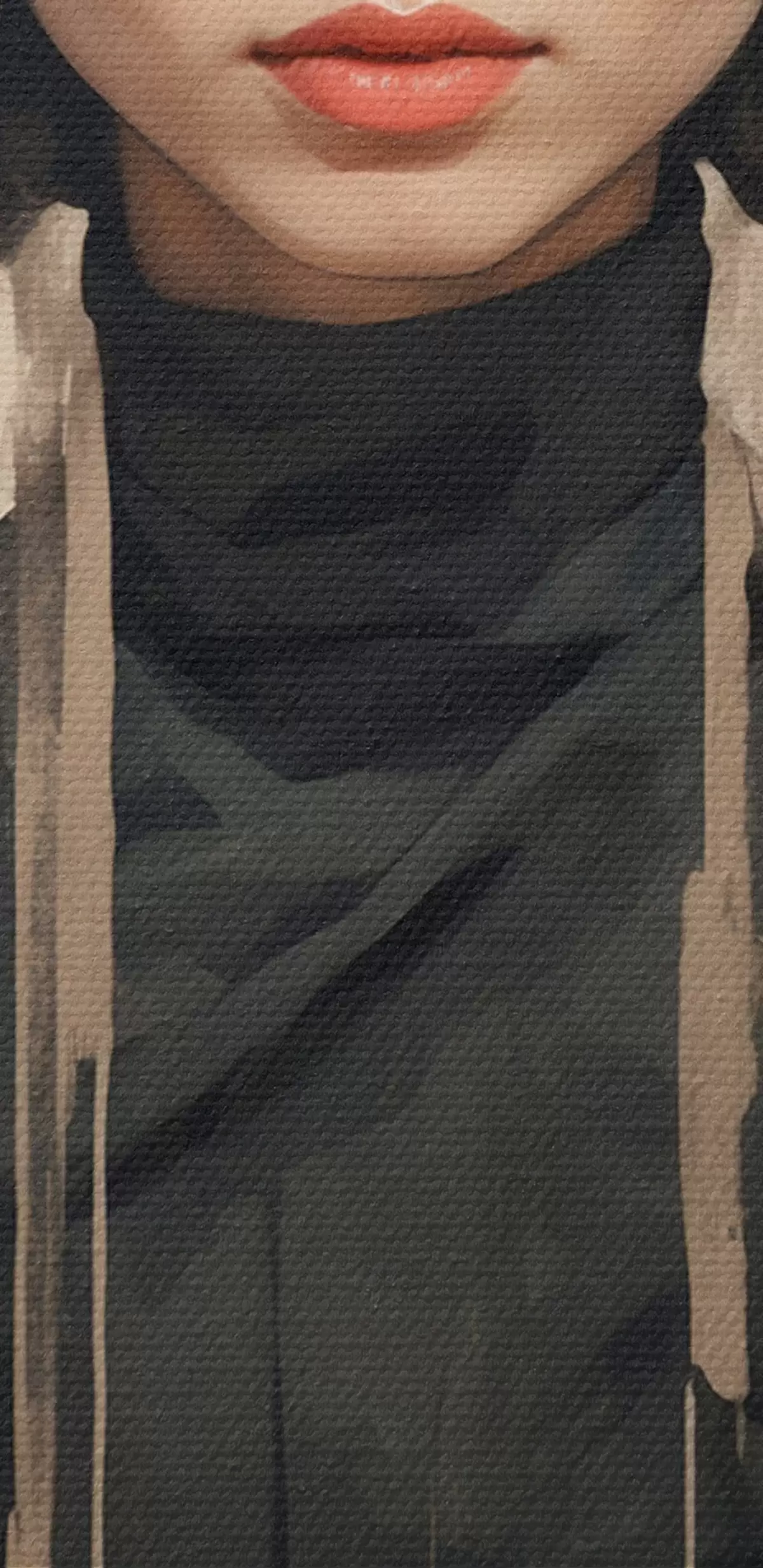 Peinture Portrait d'une femme aux cheveux courts et noirs sur fond abstrait Art. s44890