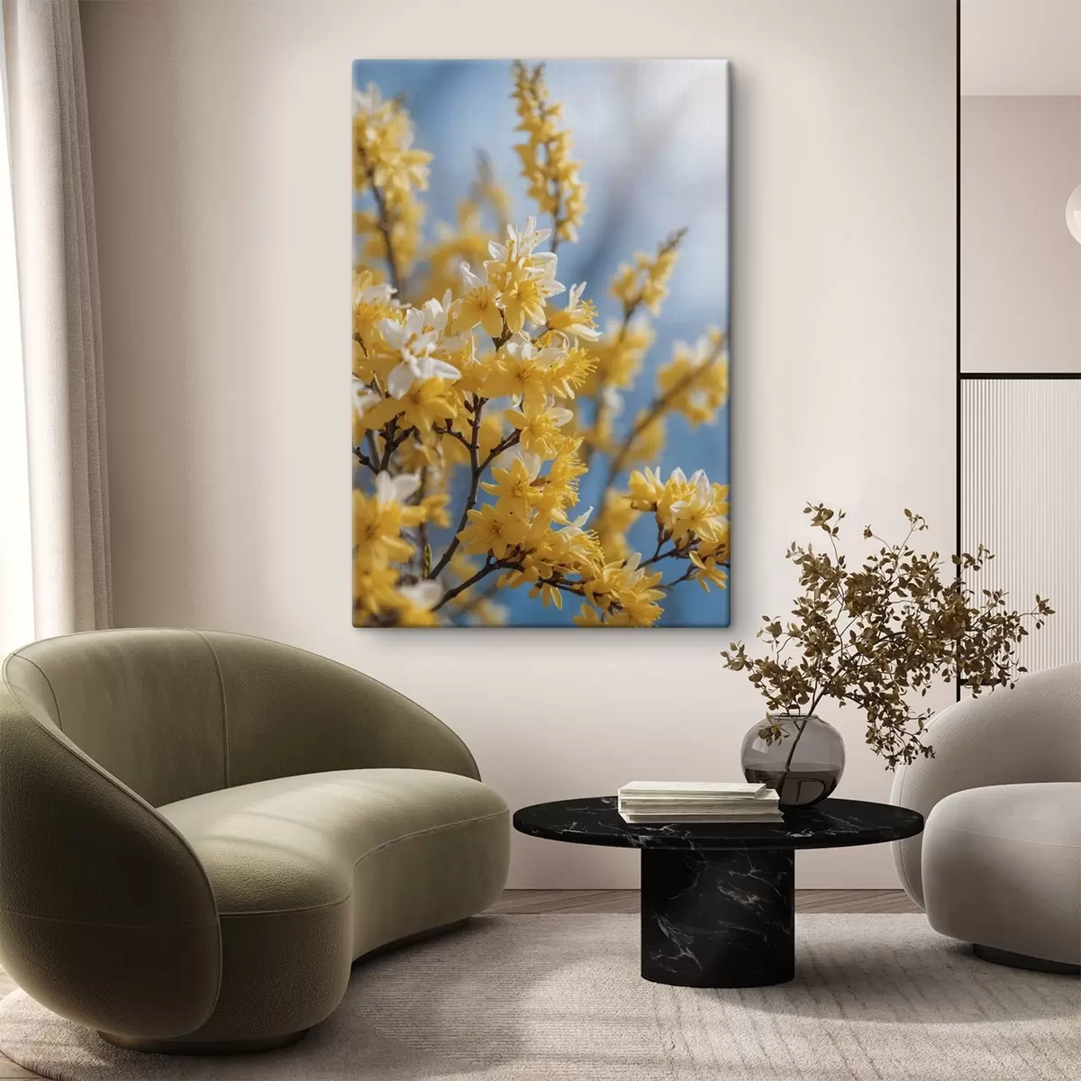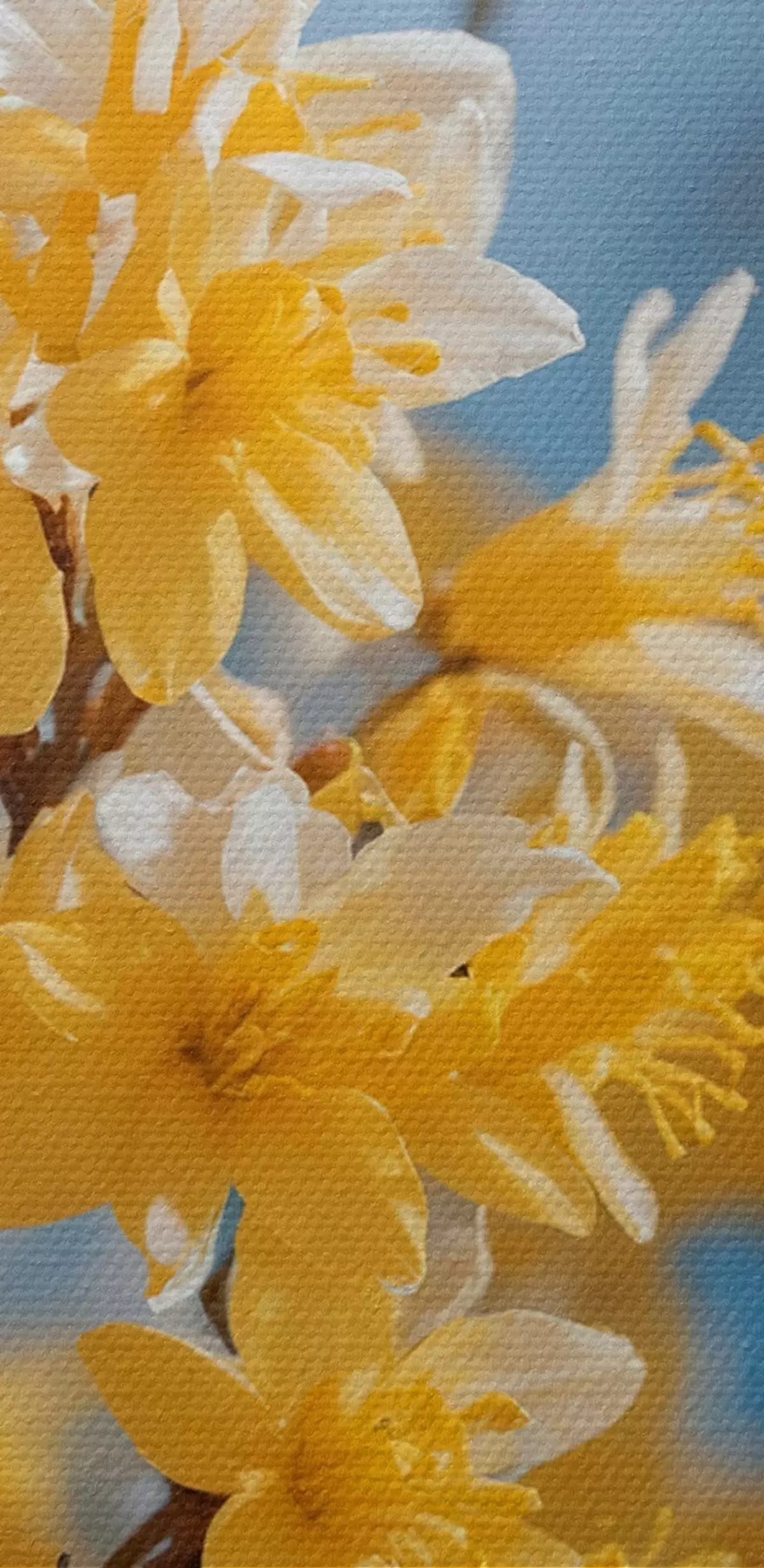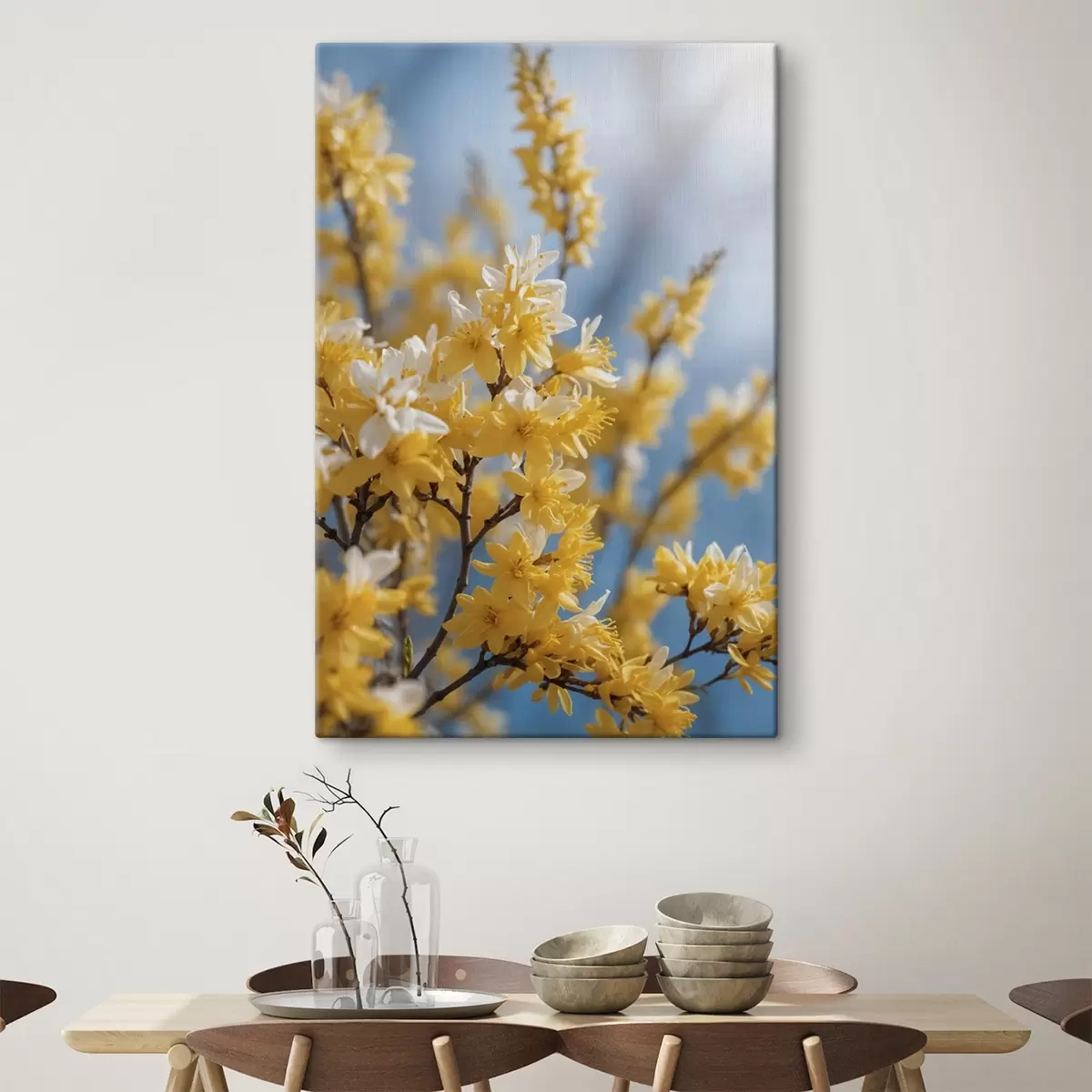 Peinture Fleurs jaunes sur fond bleu avec mise au point douce Art. s44894