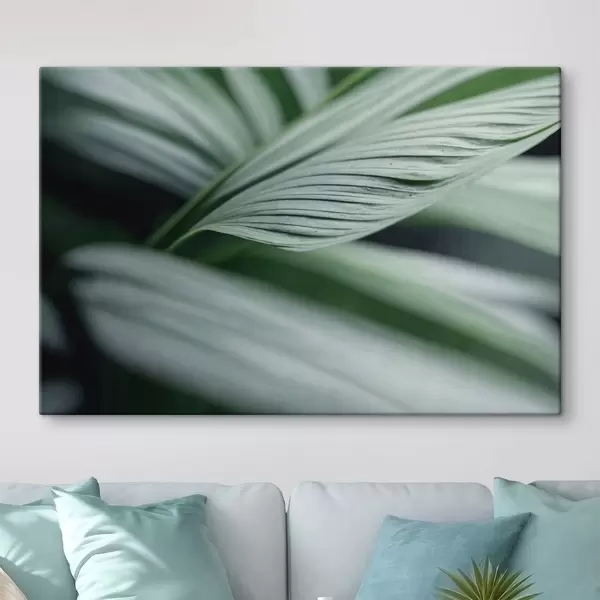 Peinture Feuilles tropicales avec gouttelettes d'eau dans un environnement brumeux Art. s44903