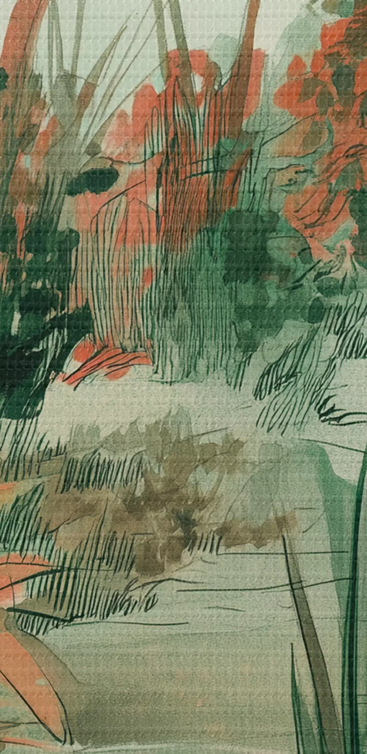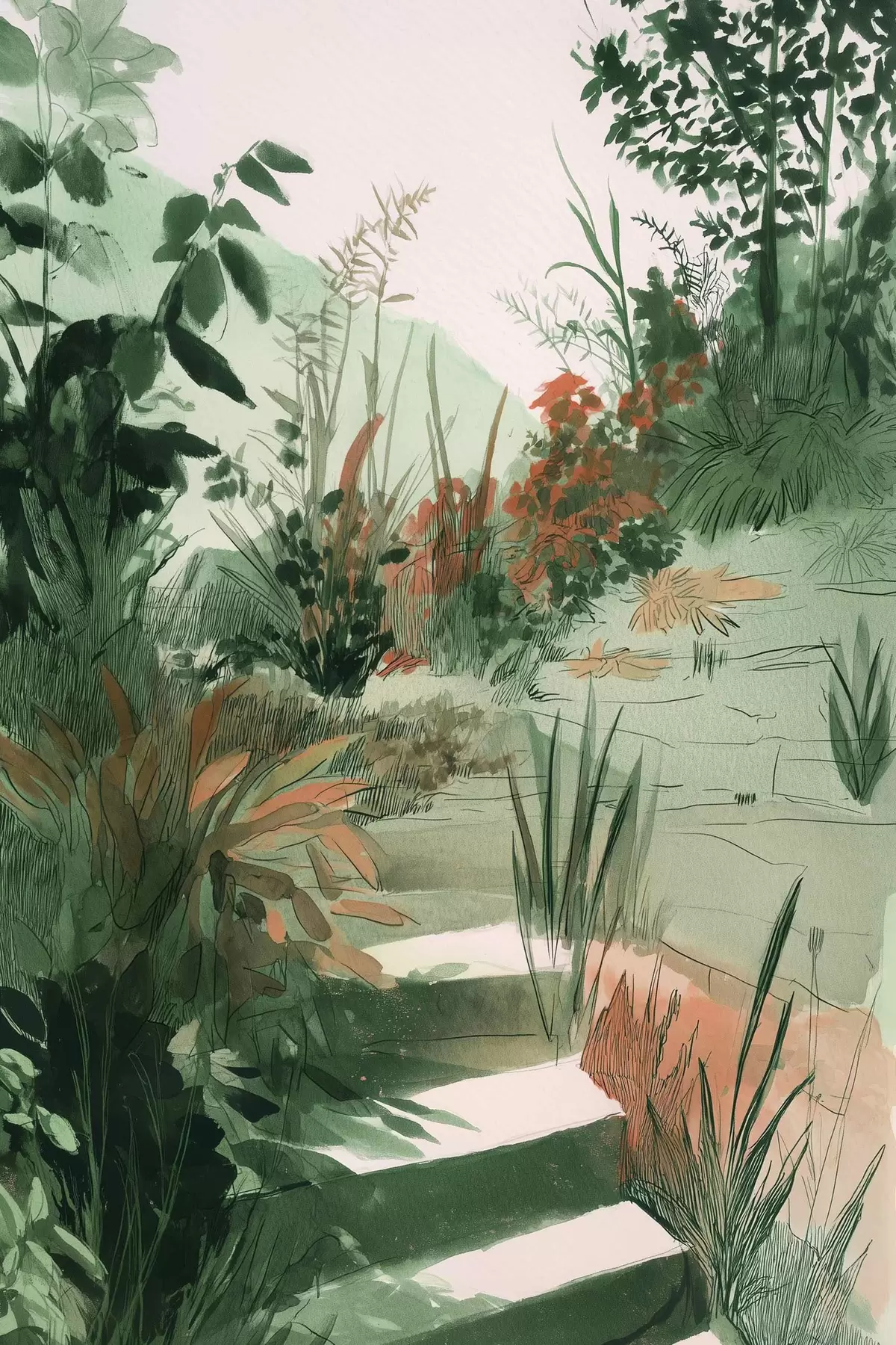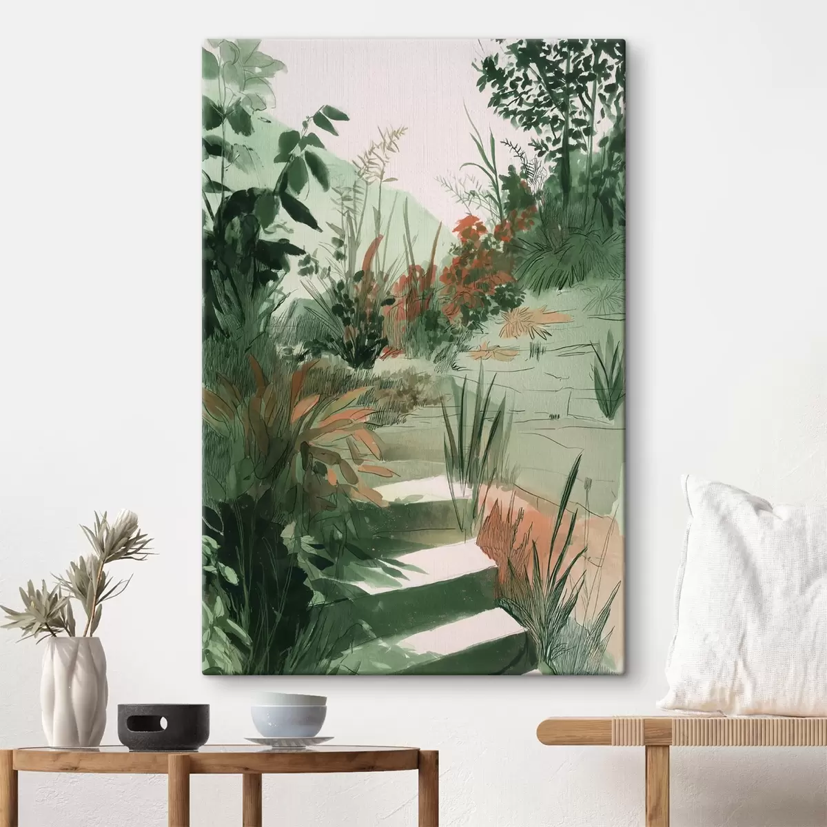 Peinture Jardin oriental avec buissons et arbres, couleurs vertes Art. s44982