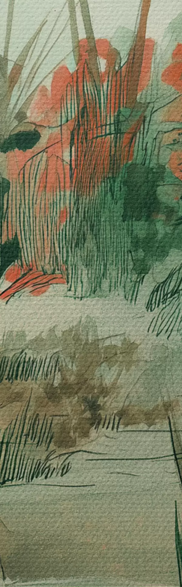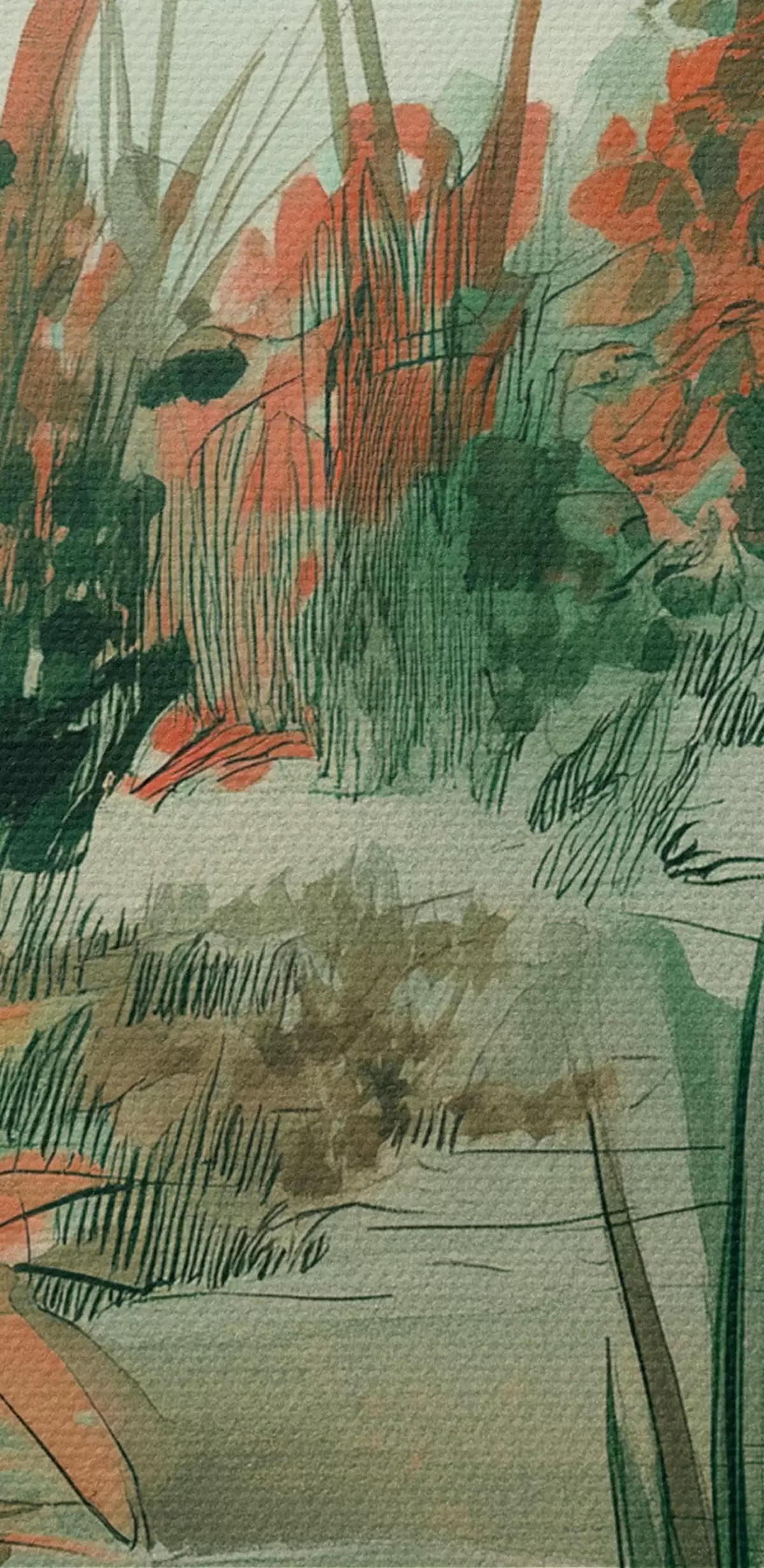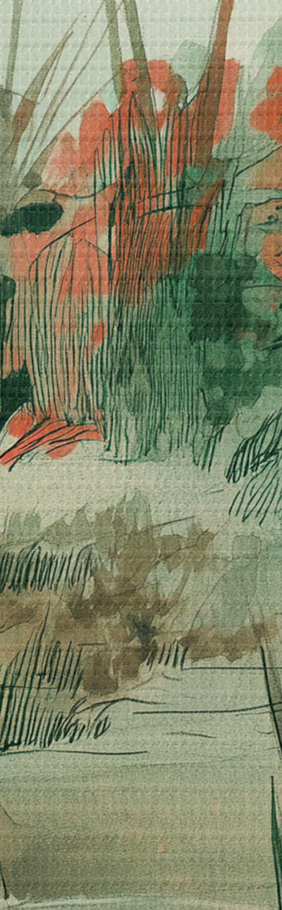 Peinture Jardin oriental avec buissons et arbres, couleurs vertes Art. s44982