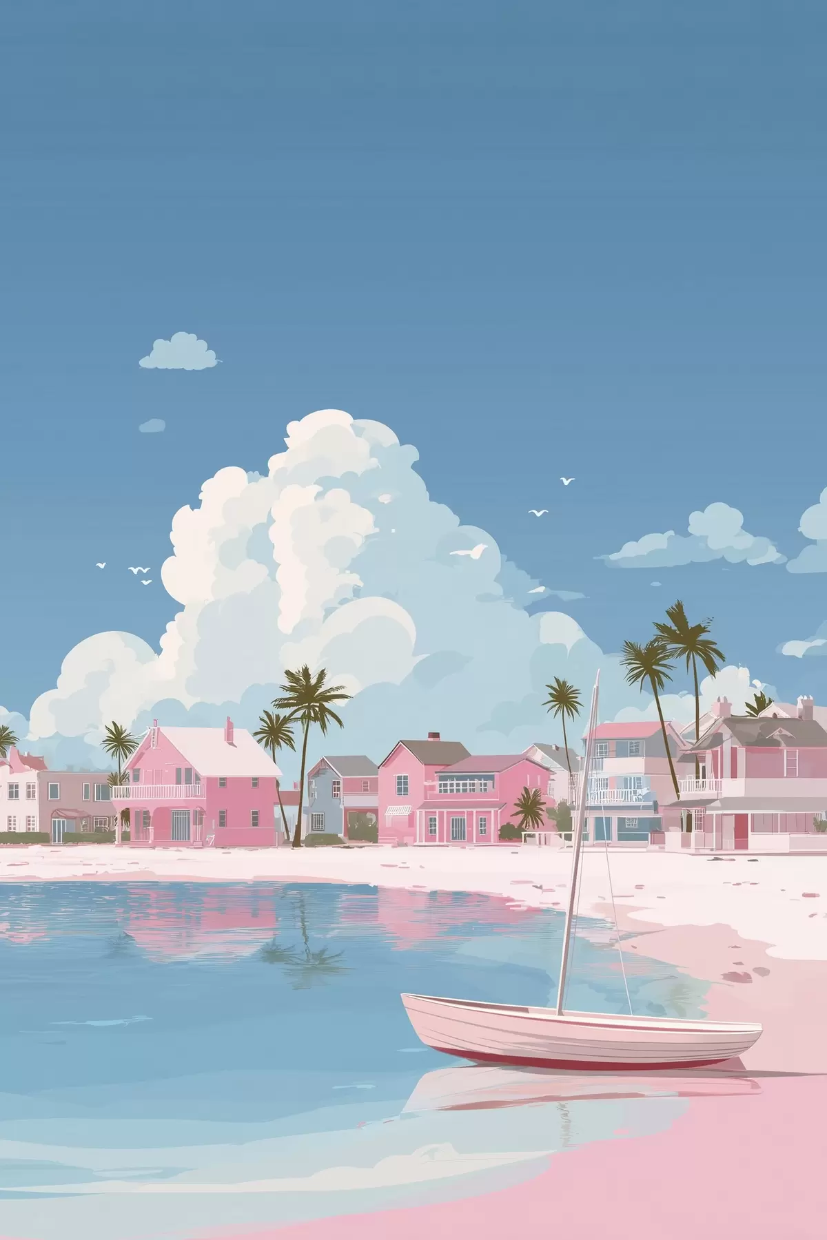 Peintures Plage d'été rose et colorée s44985