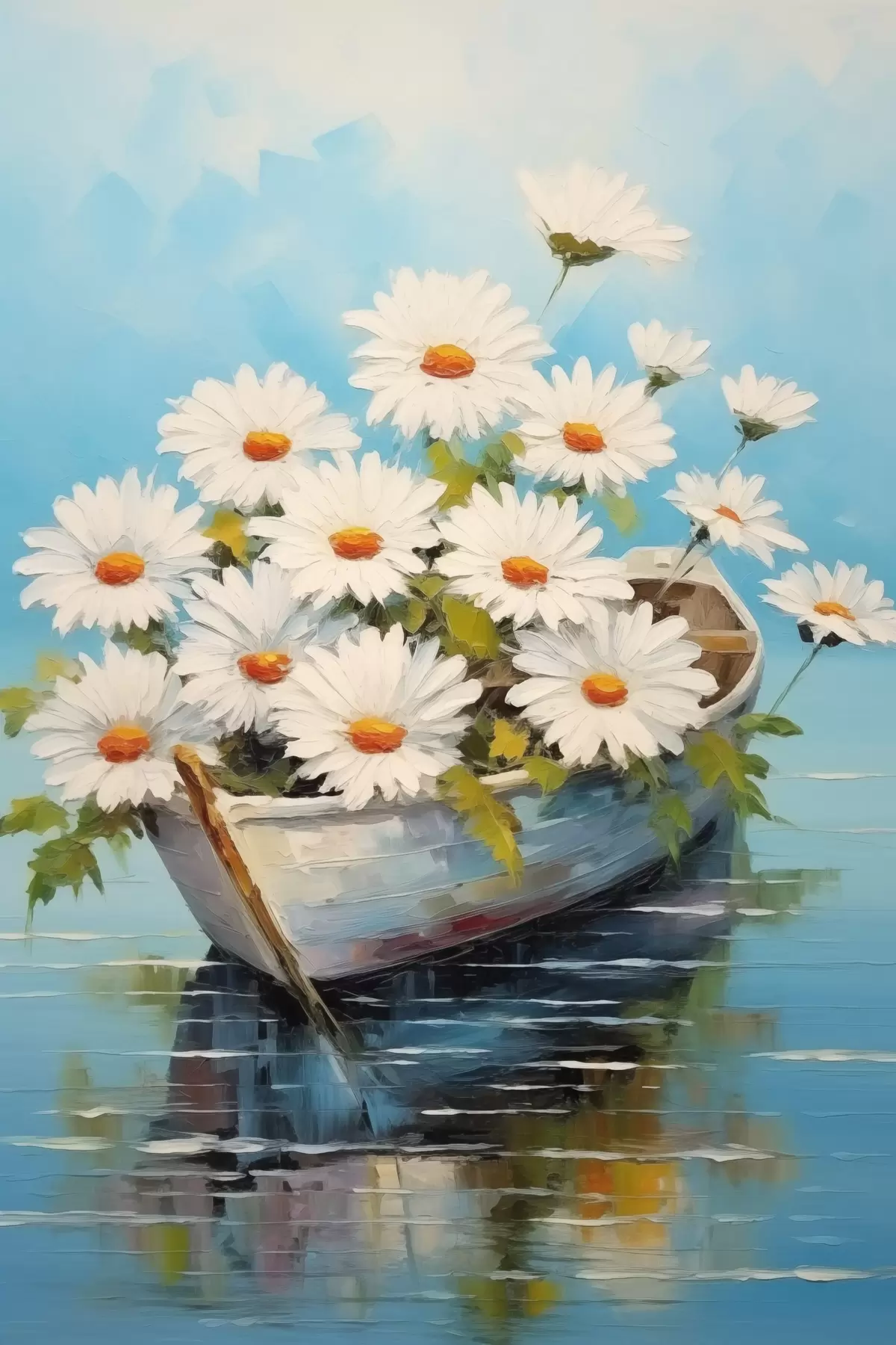 Peinture Marguerites dans un bateau sur l'eau Art. s44987