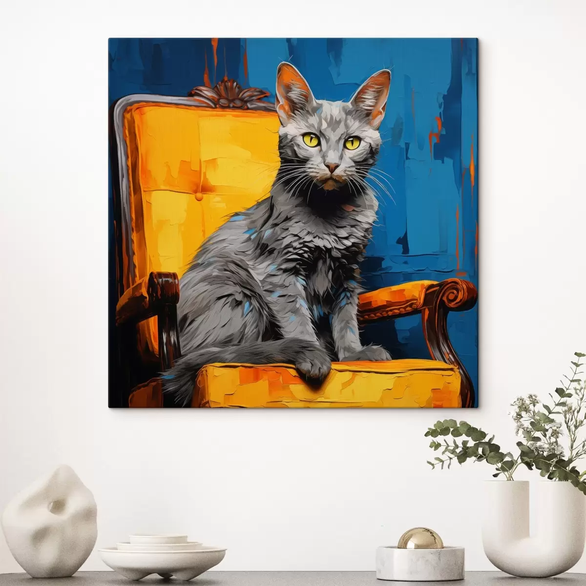Peinture Portrait artistique de chat sur fond bleu Art. s45030