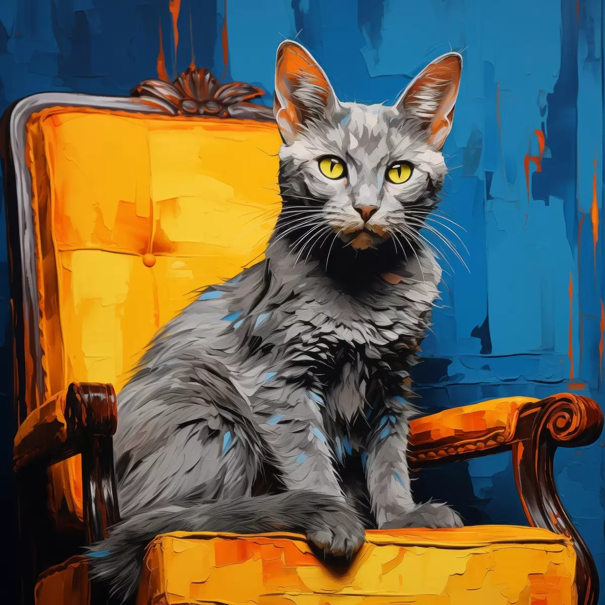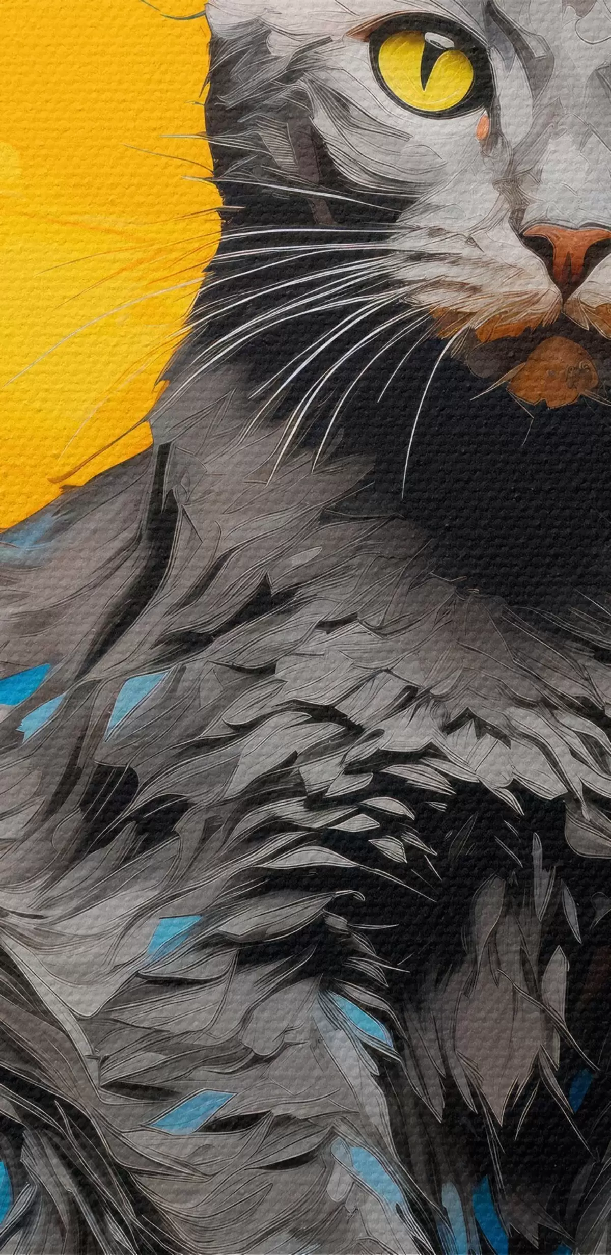 Peinture Portrait artistique de chat sur fond bleu Art. s45030