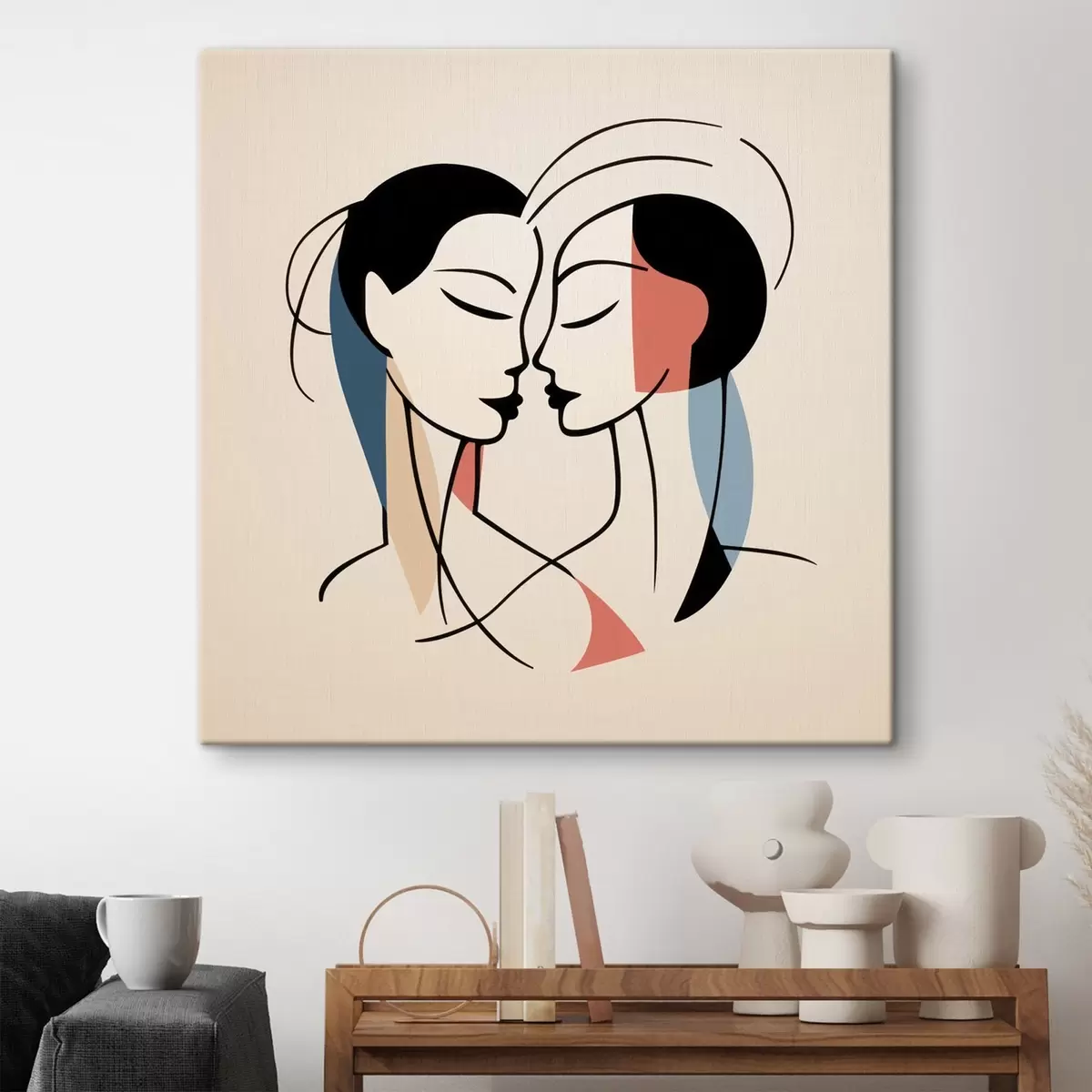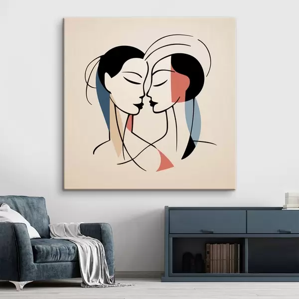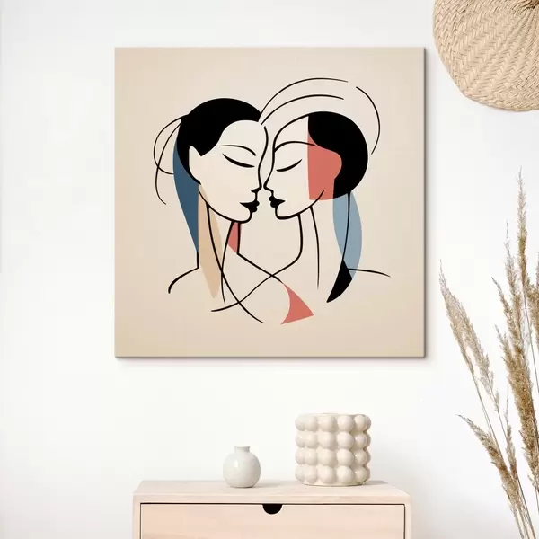 Peinture Deux visages en style abstrait avec des éléments colorés Art. s45037