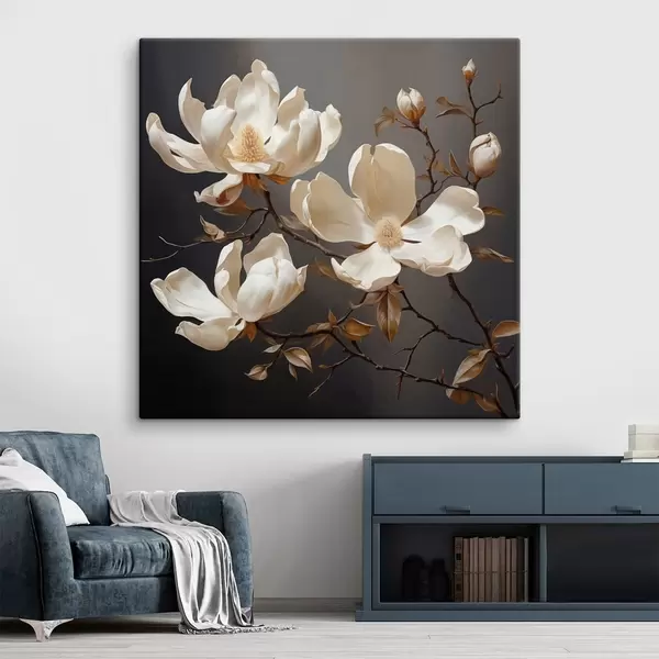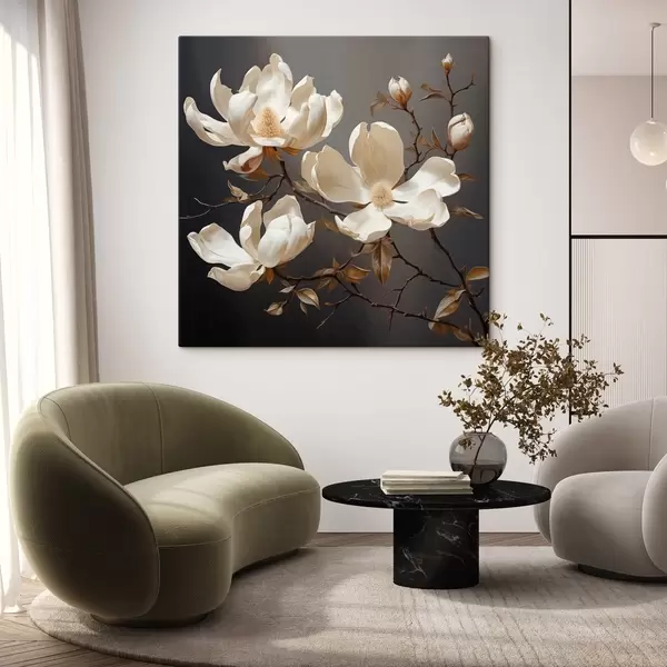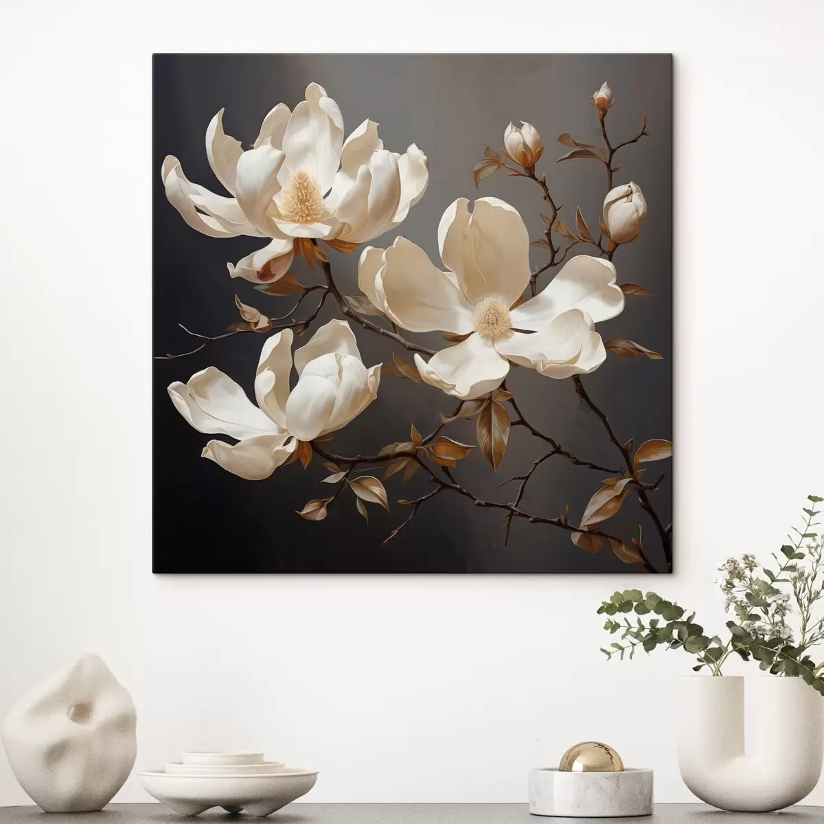 Peinture Magnolias blancs sur fond sombre dans un style pictural Art. s45038