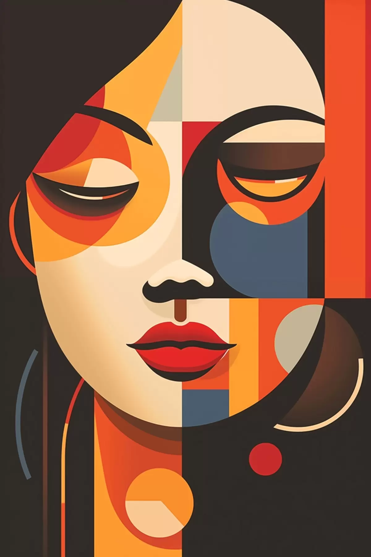 Peinture Visage féminin géométrique dans des couleurs chaudes Art. s45087