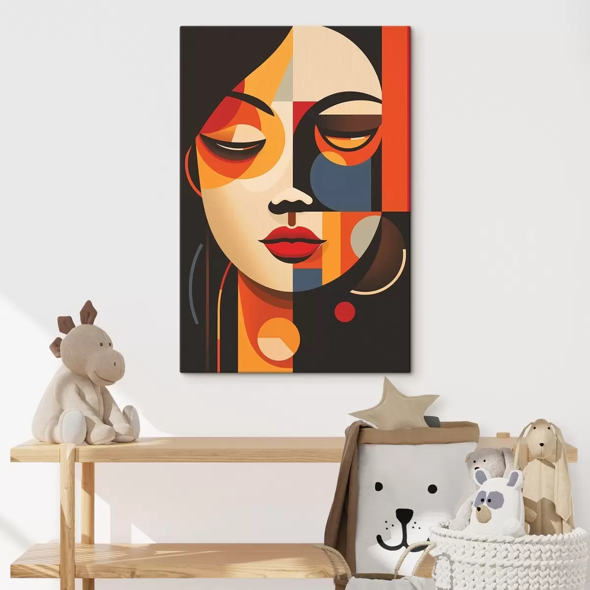 Peintures Visage féminin géométrique dans des couleurs chaudes s45087