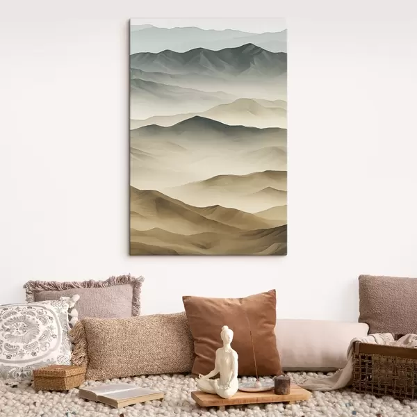 Peinture montagnes, couches, brume, dégradé doux, naturel, beige, abstrait, paysage Art. s45095