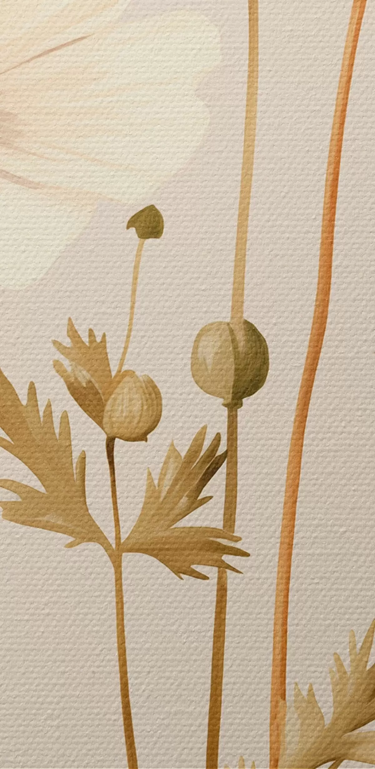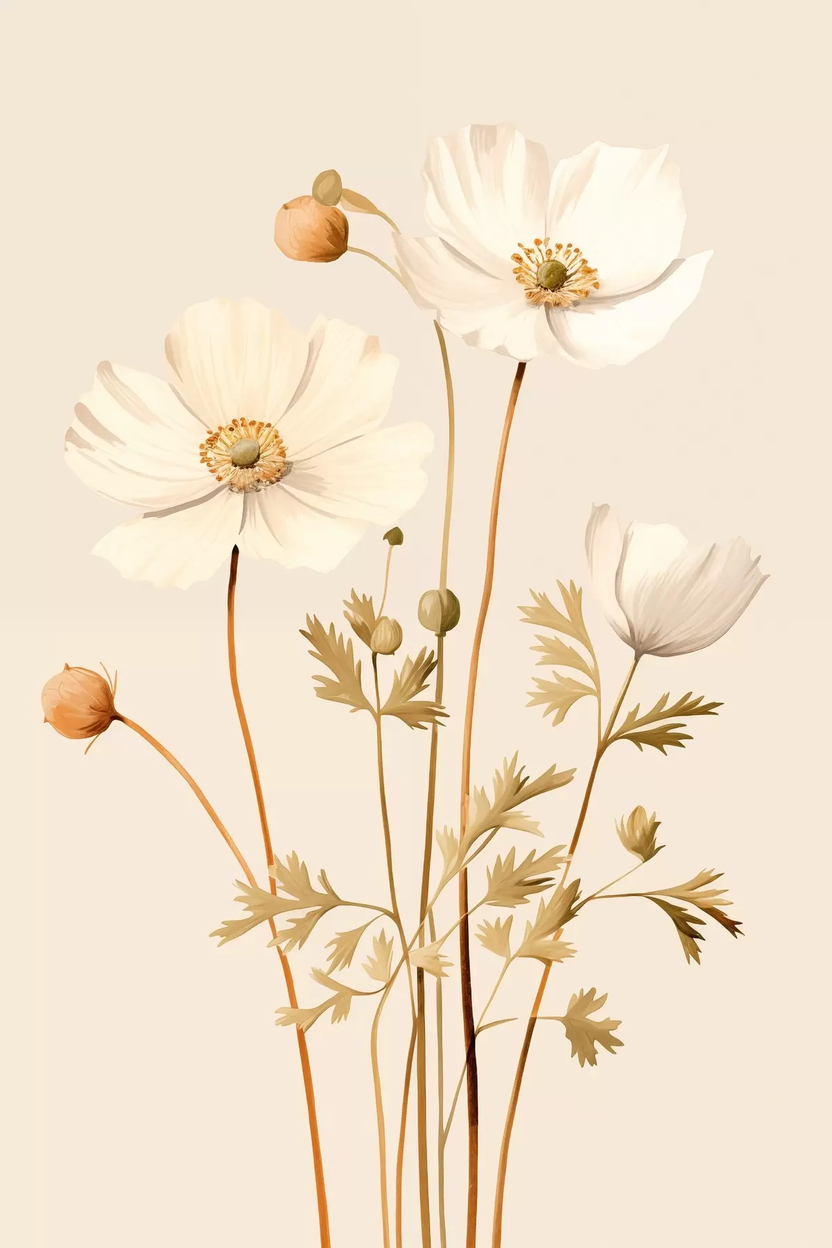 Peintures fleur, botanique, fond beige, tons doux, pétales, plante, vintage, minimal s45099