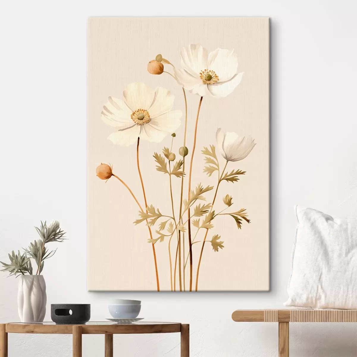 Peinture fleur, botanique, fond beige, tons doux, pétales, plante, vintage, minimal Art. s45099