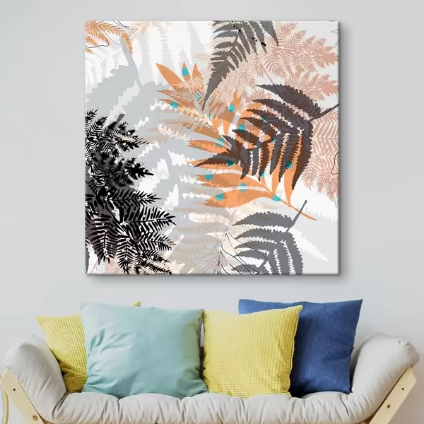 Peinture feuillage de la jungle, style moderne, dessin au trait, plantes superposées, couleurs sourdes, nature Art. s45102