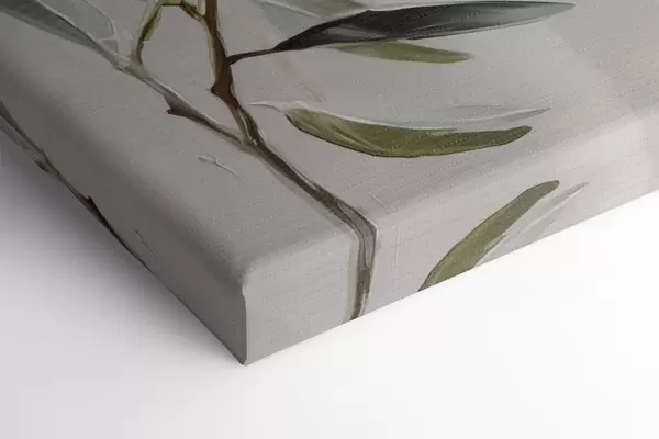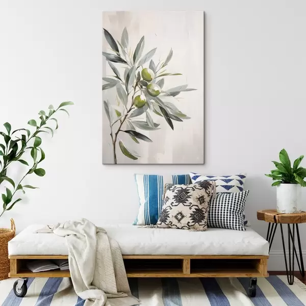 Peinture branche d'olivier, fruit vert, tons sourds, feuilles, minimal, naturel, peinture à l'huile, botanique Art. s45109