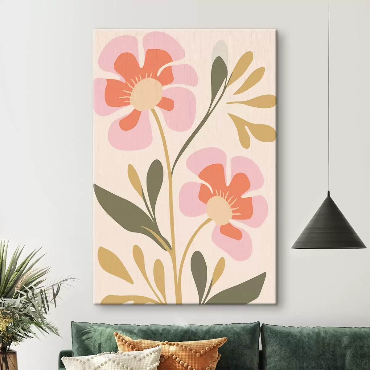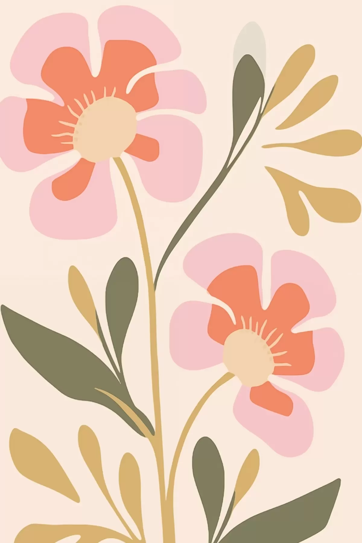 Peintures Fleurs stylisées roses et orange avec des feuilles vertes s45140