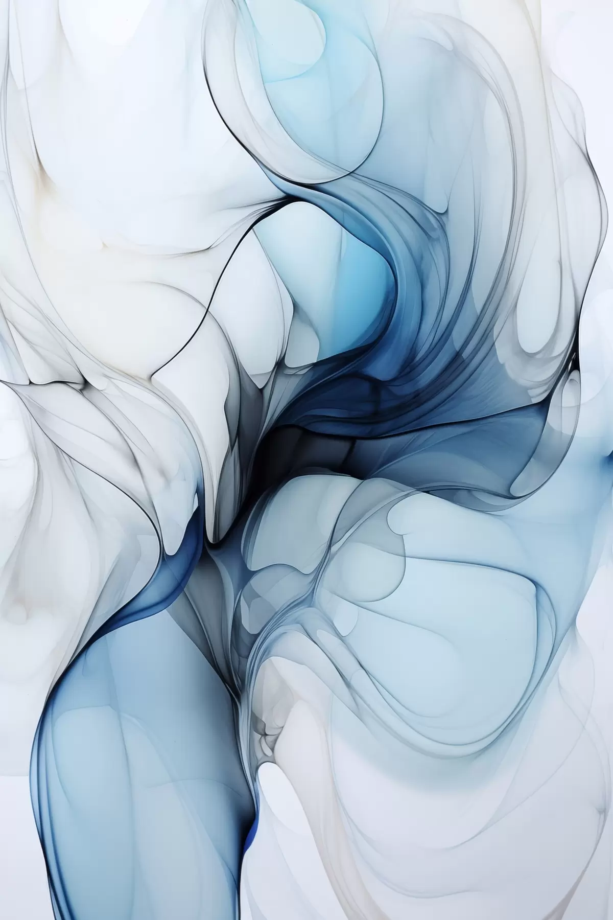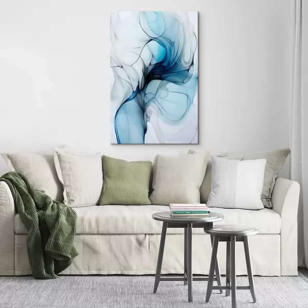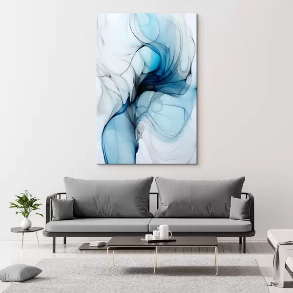 Peinture Composition abstraite avec des lignes fluides et des pétales translucides dans les tons bleu blanc et beige, imitation encre à l'alcool Art. s45178