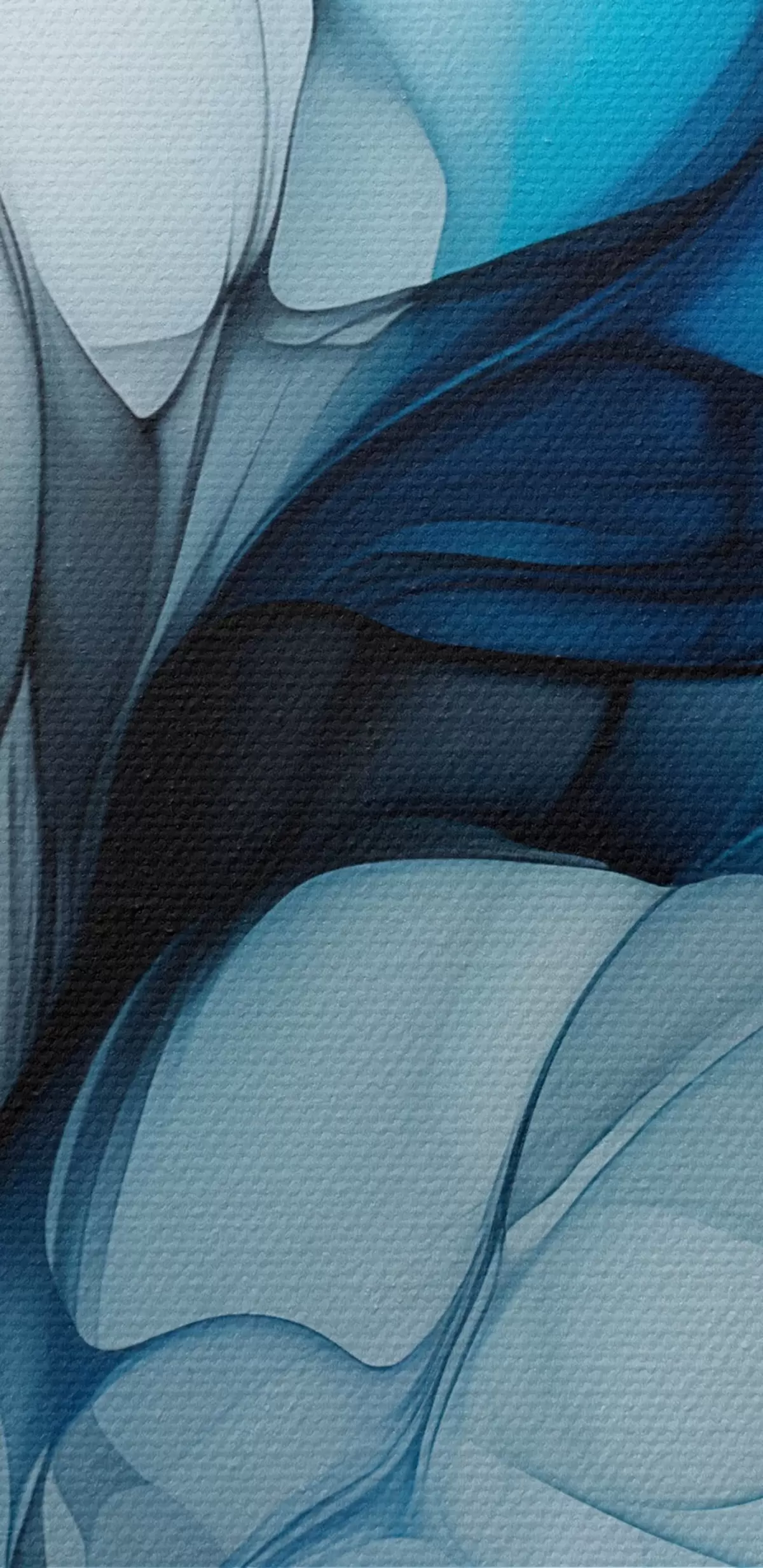 Peintures Composition abstraite avec des lignes fluides et des pétales translucides dans les tons bleu blanc et beige, imitation encre à l'alcool s45178