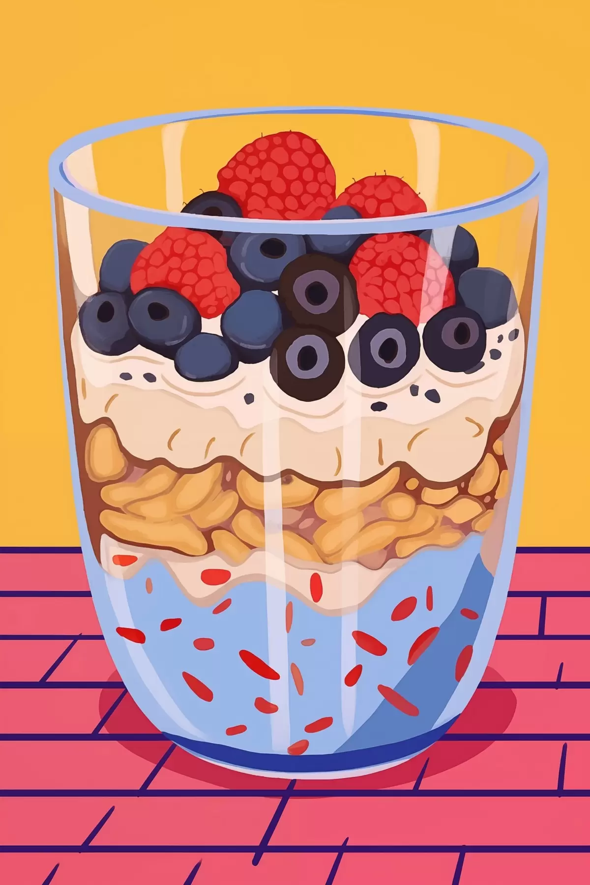 Peinture Verre avec du yaourt, des baies et des céréales Art. s45216