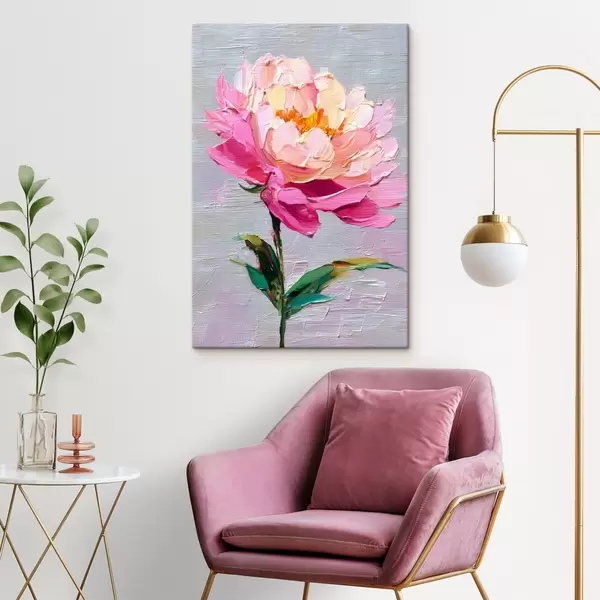 Peinture Pivoine d'art : composition vibrante dans un style volumétrique Art. s45248