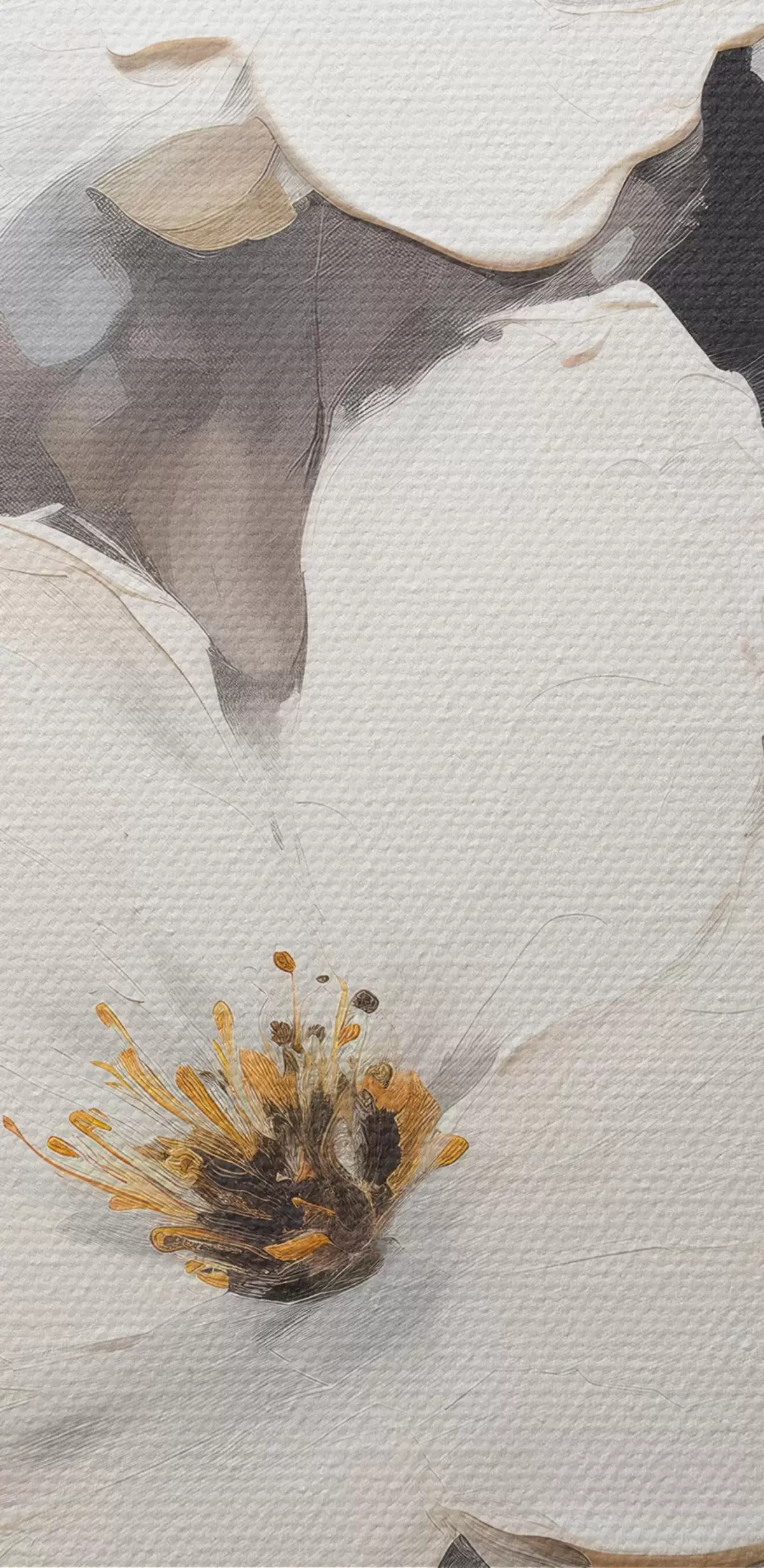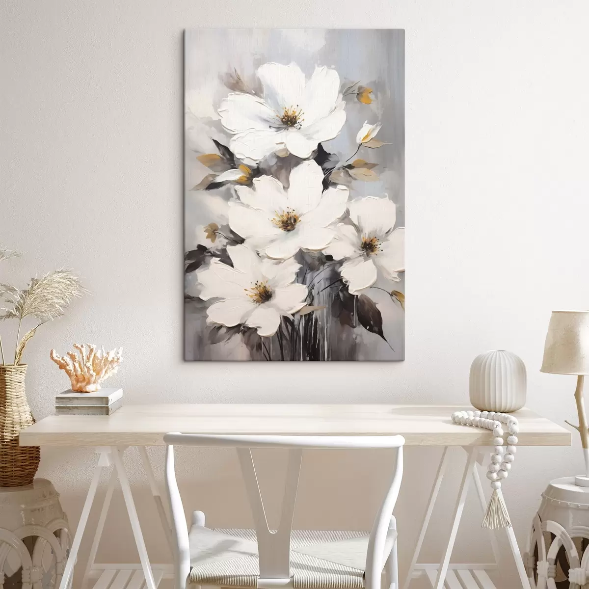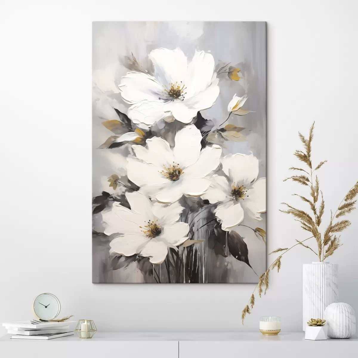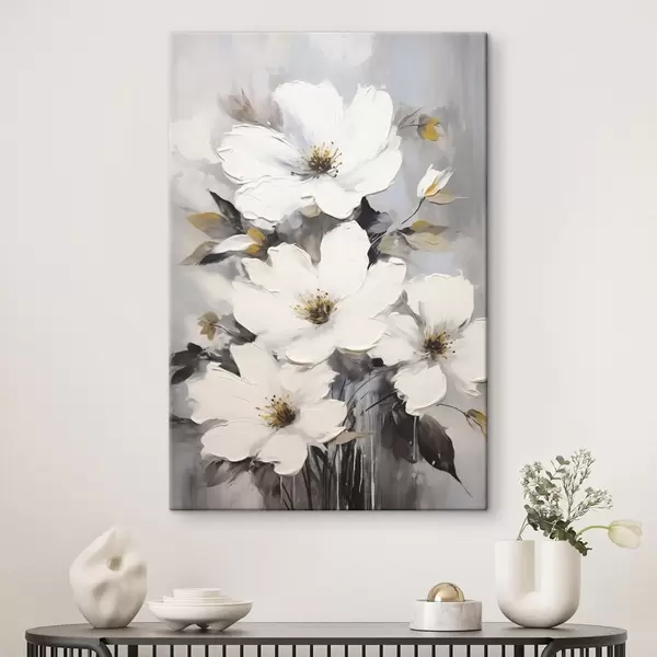 Peinture Fleurs blanches : peinture volumétrique sur fond gris Art. s45252
