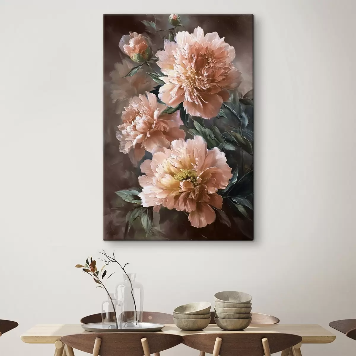 Peinture Bouquet de pivoines roses avec des traits gras sur un fond sombre Art. s45260