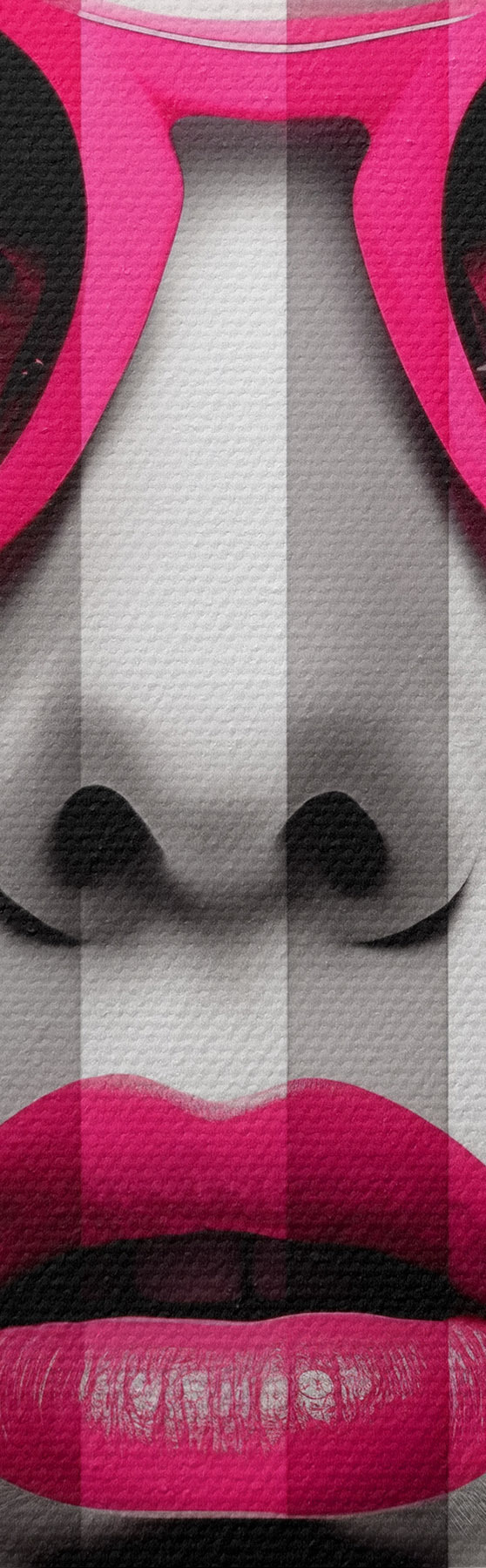 Peinture Femme portant des lunettes roses à rayures noires et blanches Art. s45315