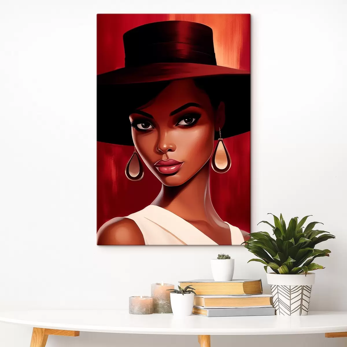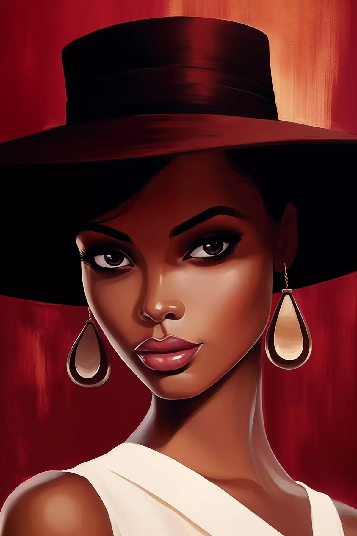 Peinture Femme avec un chapeau et des boucles d'oreilles Art. s45322