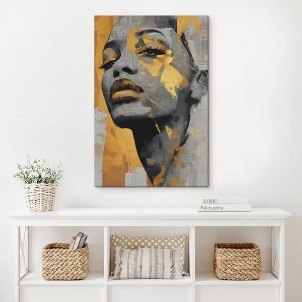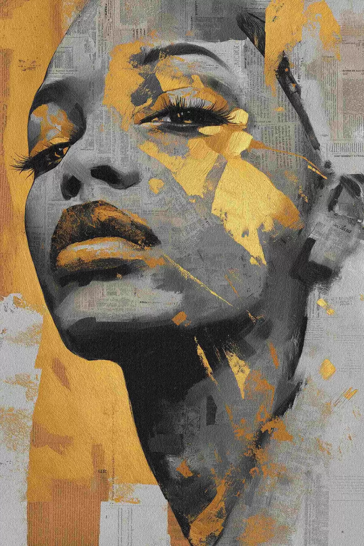 Peinture Portrait en techniques mixtes avec des fragments de journaux et des coups de pinceau décoratifs Art. s45419