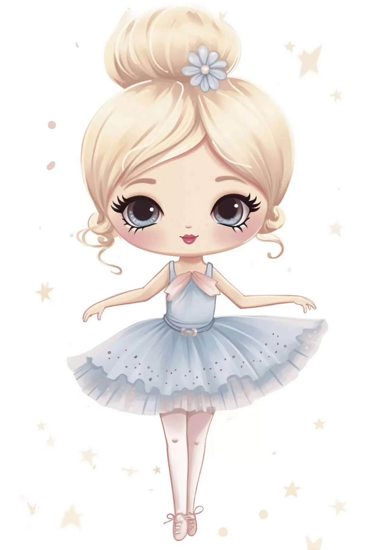 Peintures Poupée ballerine dans une robe bleue avec un nœud s45481