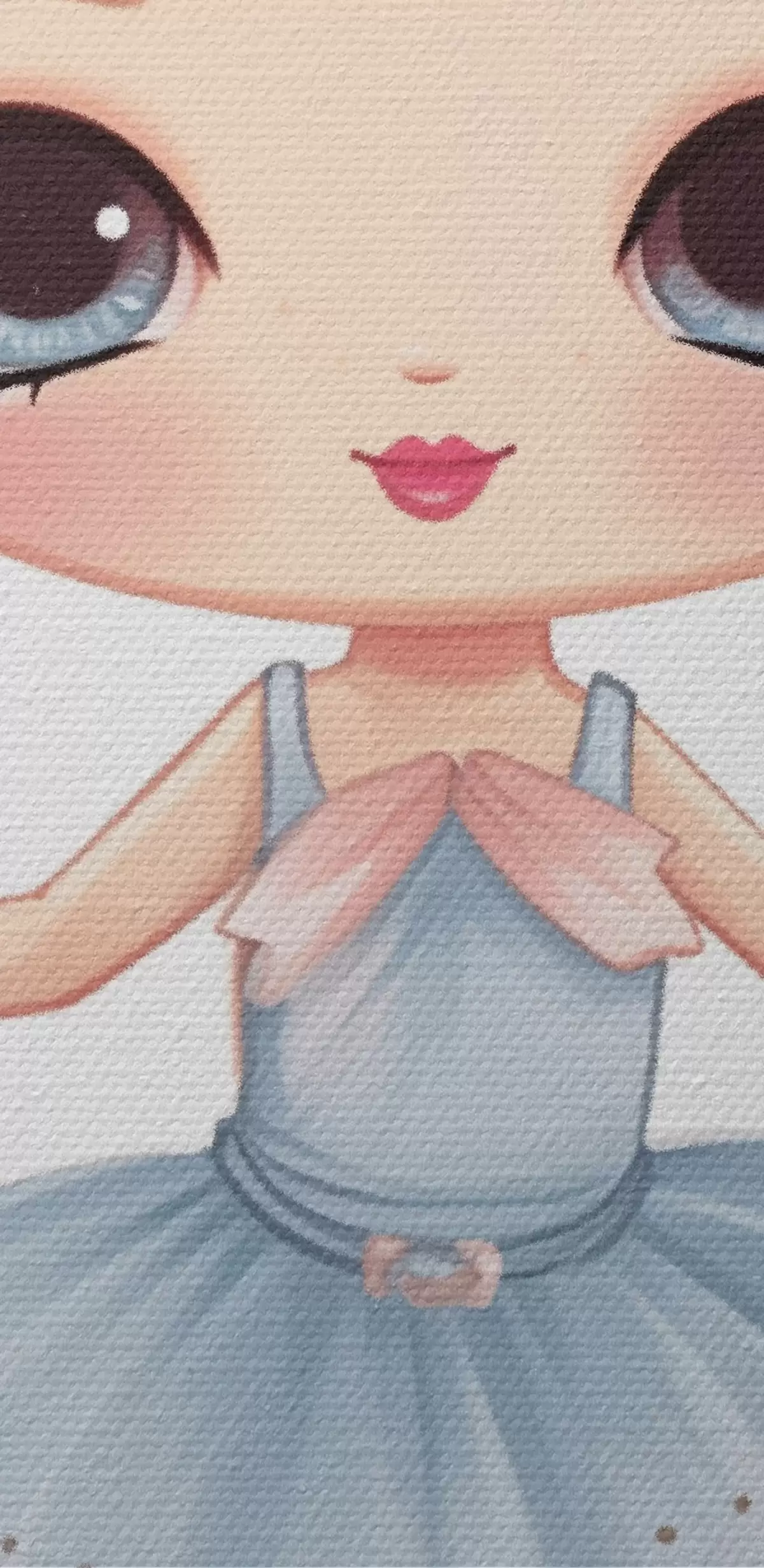 Peinture Poupée ballerine dans une robe bleue avec un nœud Art. s45481