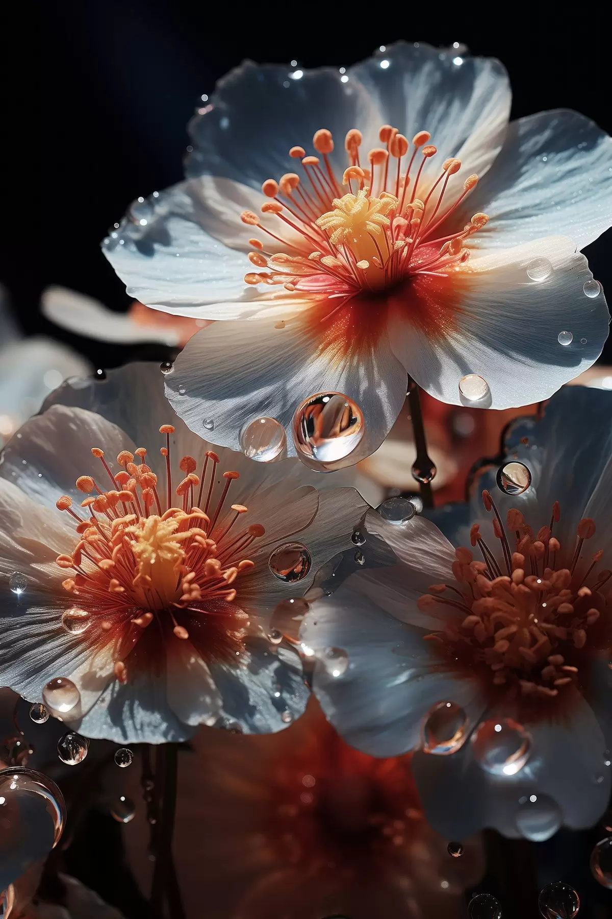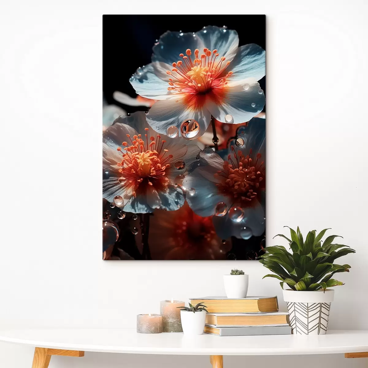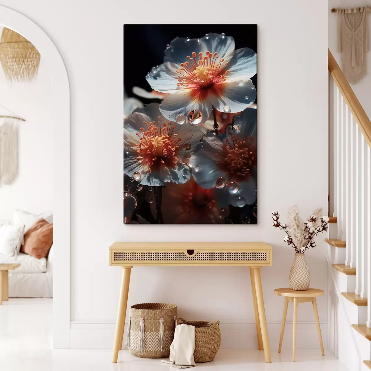 Peinture Motif floral : beauté des pétales avec rosée sur fond sombre Art. s45529