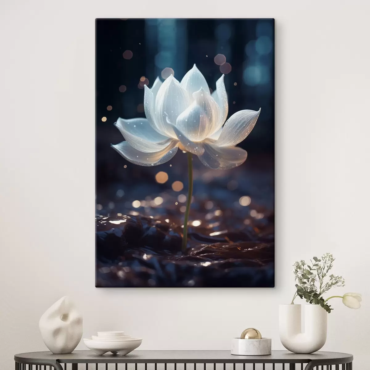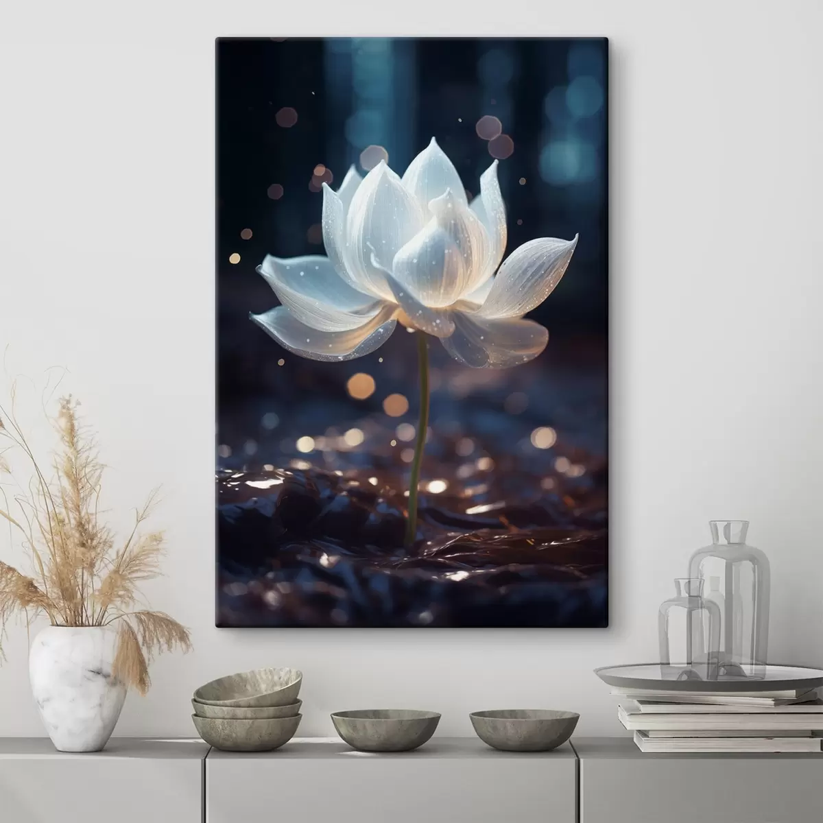 Peinture Lotus frais : composition de fleurs sur fond sombre Art. s45530