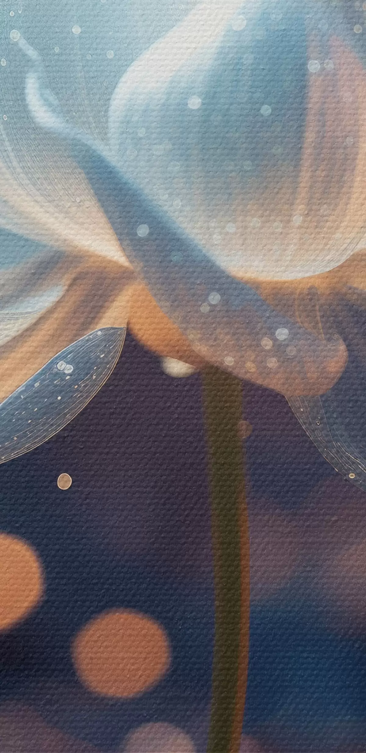 Trois types de matériaux peuvent être commandés : Economic Canvas - matériau dense et durable pour l'impression numérique, identique à la toile de peintre, surface imperméable, reproduction réaliste des détails, matériau à grain moyen. Premium Canvas - la texture ressemble à celle d'une toile de peintre (petits fils entrelacés). Reproduction douce et détaillée de l'image sur une surface mate. Eco-Premium - tissu 100 % coton de haute qualité. Grâce aux fibres naturelles de coton, le matériau est durable et résistant à l'usure. Excellente reproduction des couleurs et des détails.