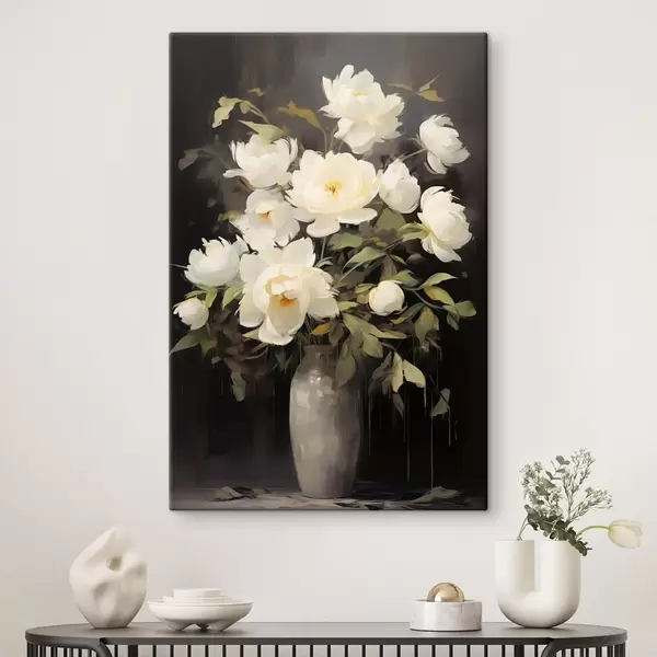 Peintures Pivoines délicates dans un vase : composition florale dans le style de la peinture s45532