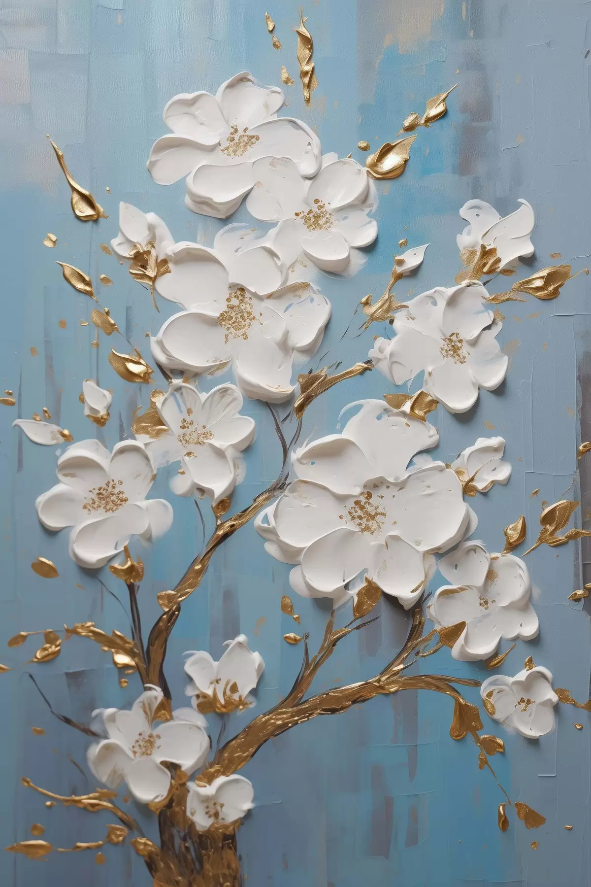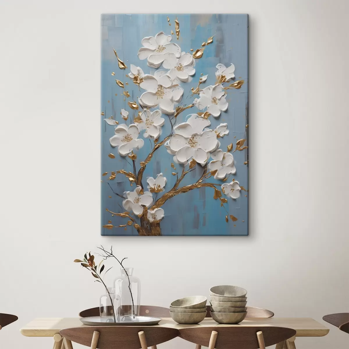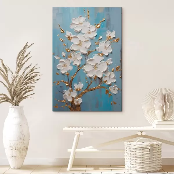 Peintures Fleurs blanches sur une branche : motif décoratif dans les tons bleu clair s45541
