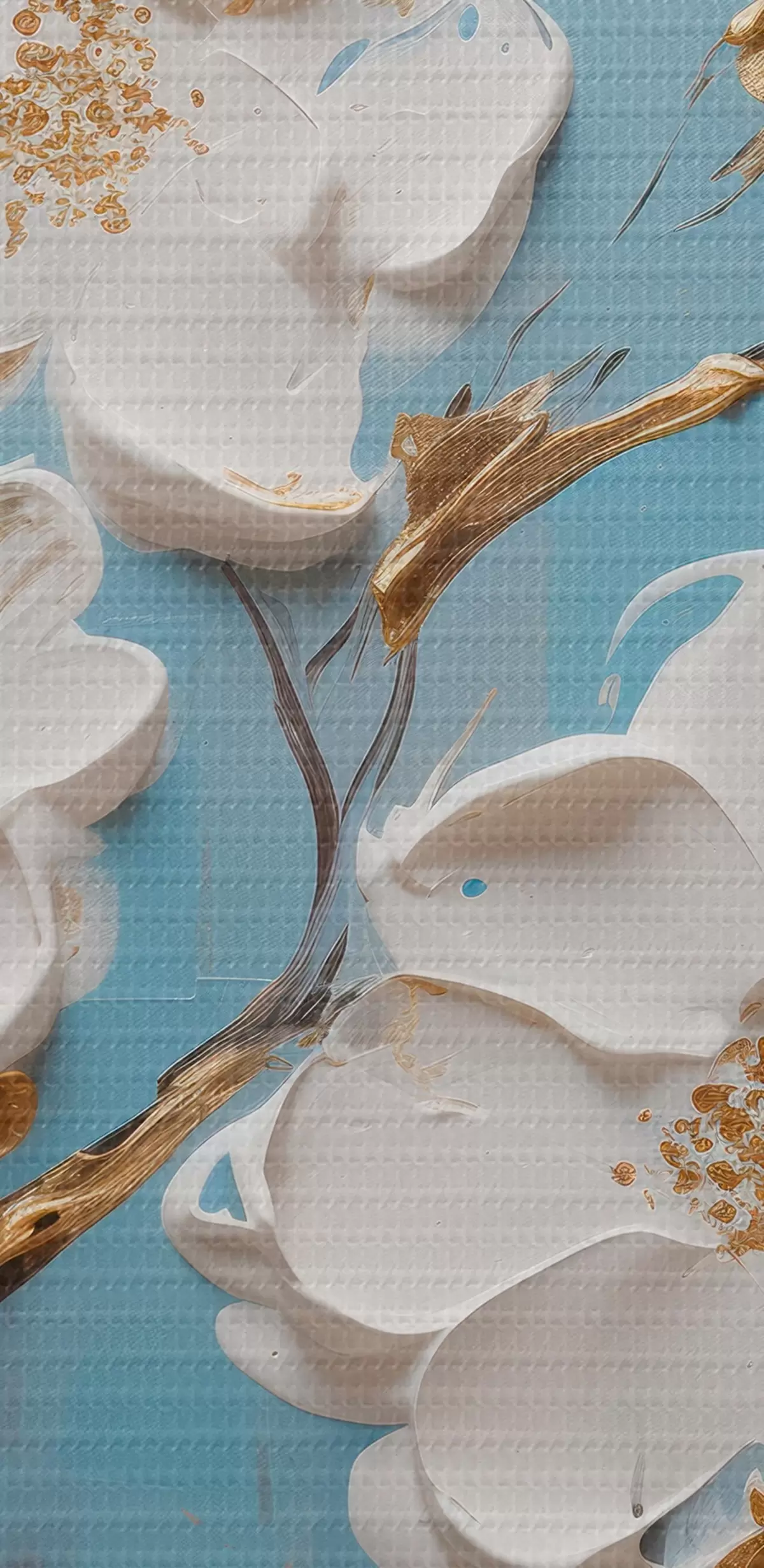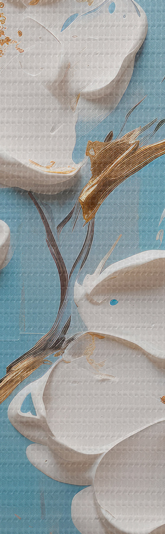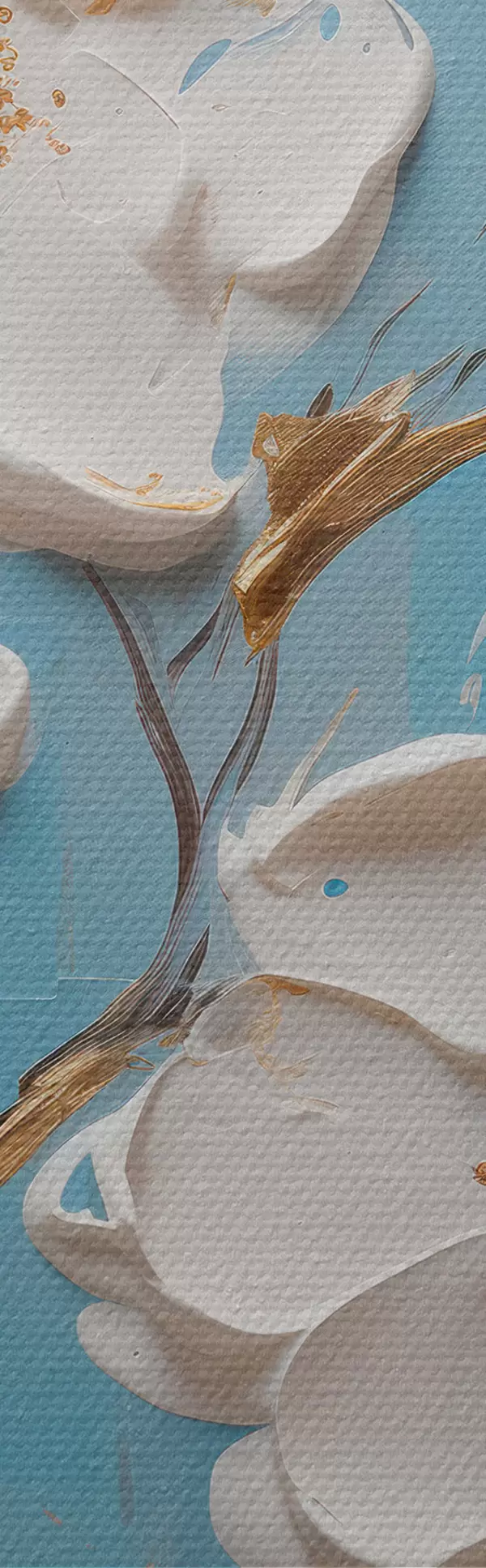 Peinture Fleurs blanches sur une branche : motif décoratif dans les tons bleu clair Art. s45541
