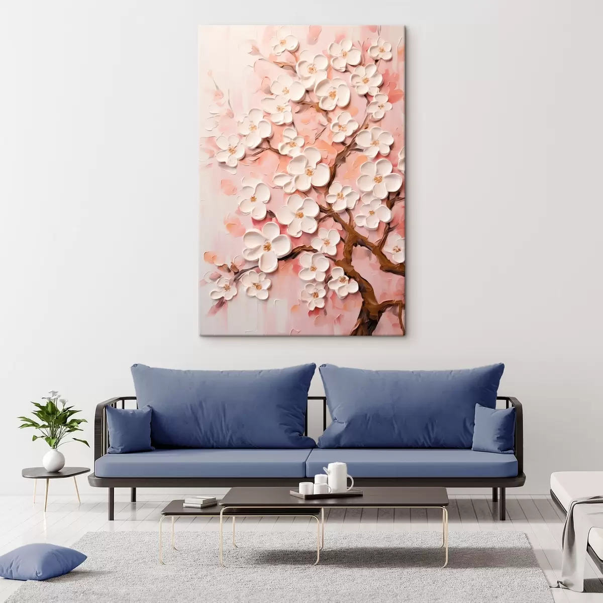 Peinture Branche fleurie : composition en relief dans des tons roses clairs Art. s45543