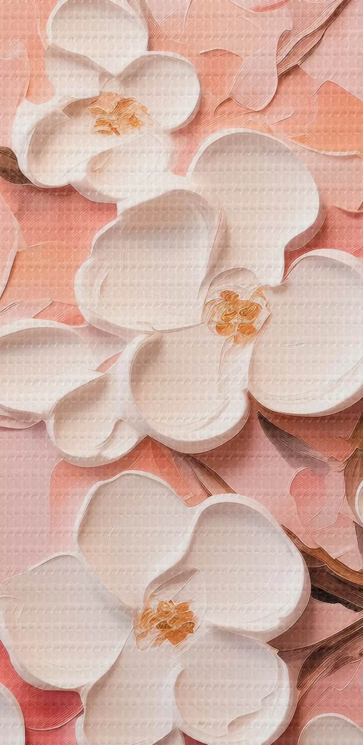 Peintures Branche fleurie : composition en relief dans des tons roses clairs s45543