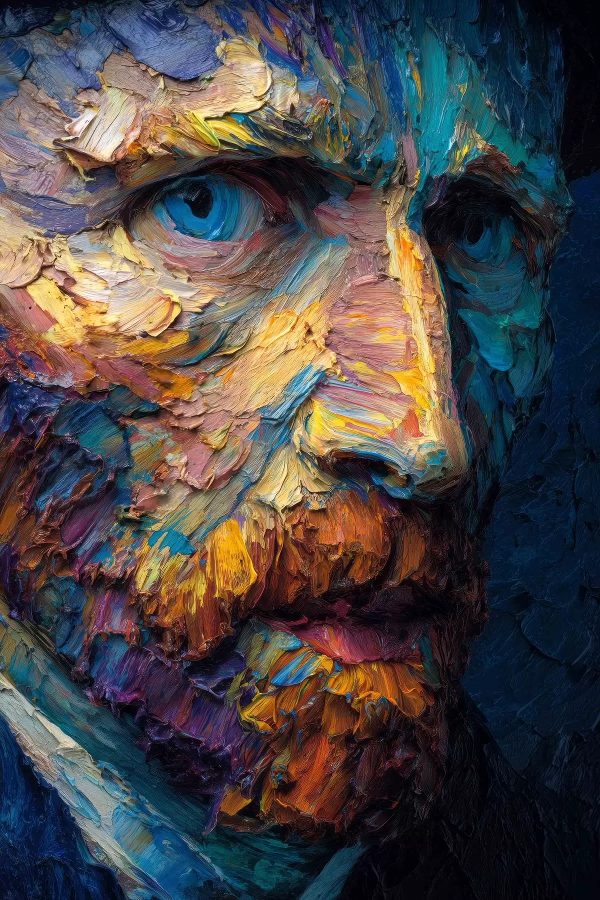 Peinture Portrait décoratif de Van Gogh : peinture en relief dans les tons bleu et orange Art. s45546