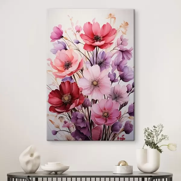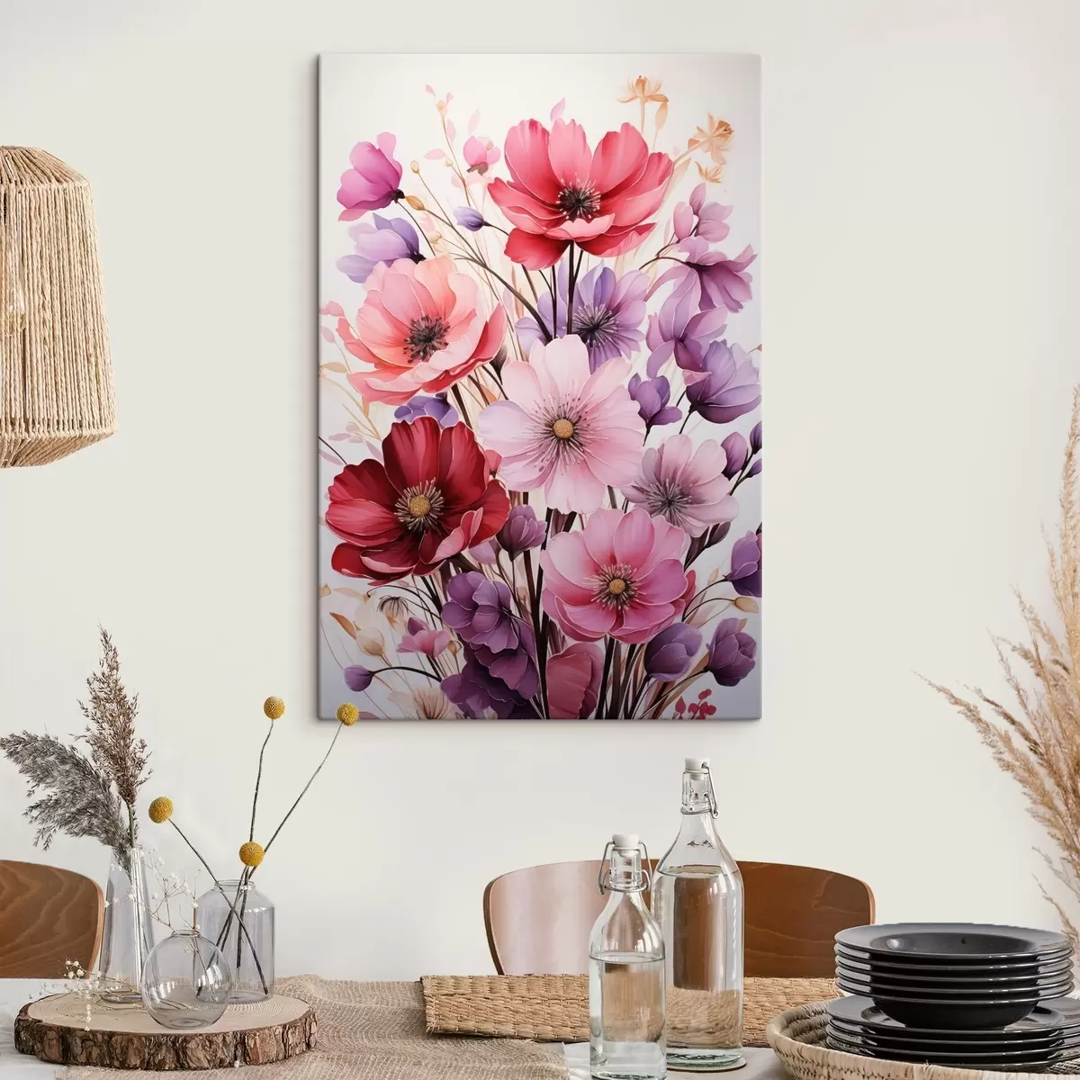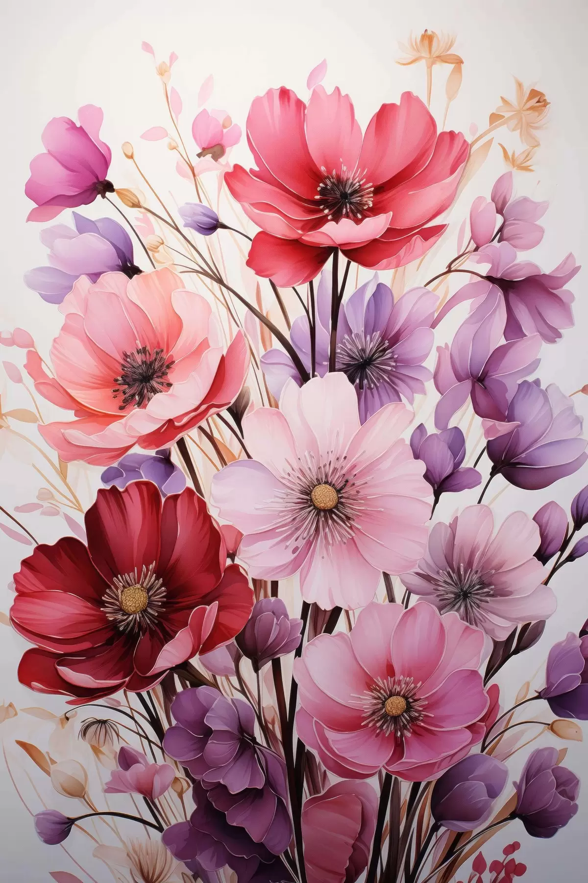 Peinture Bouquet délicat de coquelicots roses et lilas sur un fond clair, style aquarelle Art. s45601